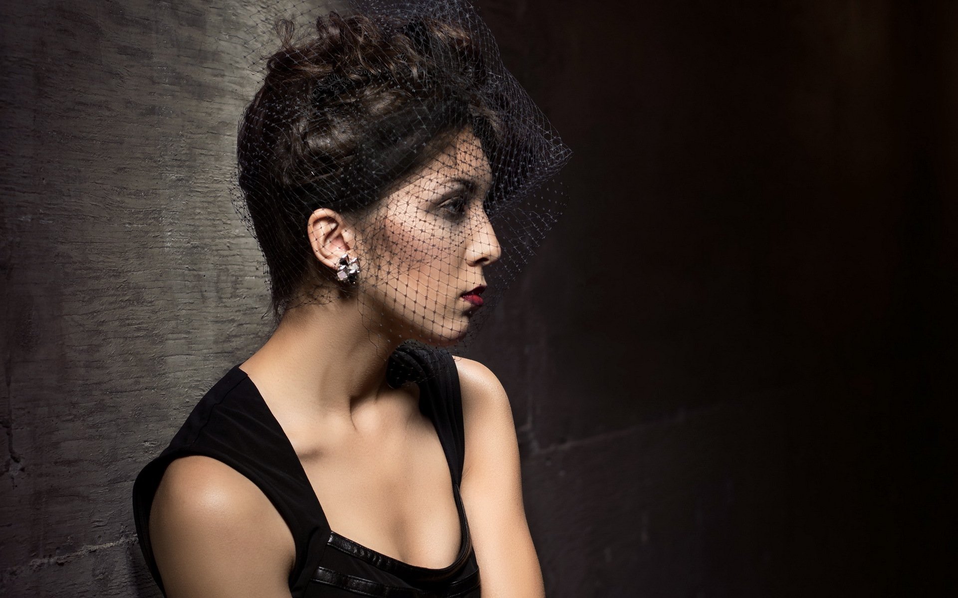 Beautiful brunette in a hat with a veil - desktop wallpapers