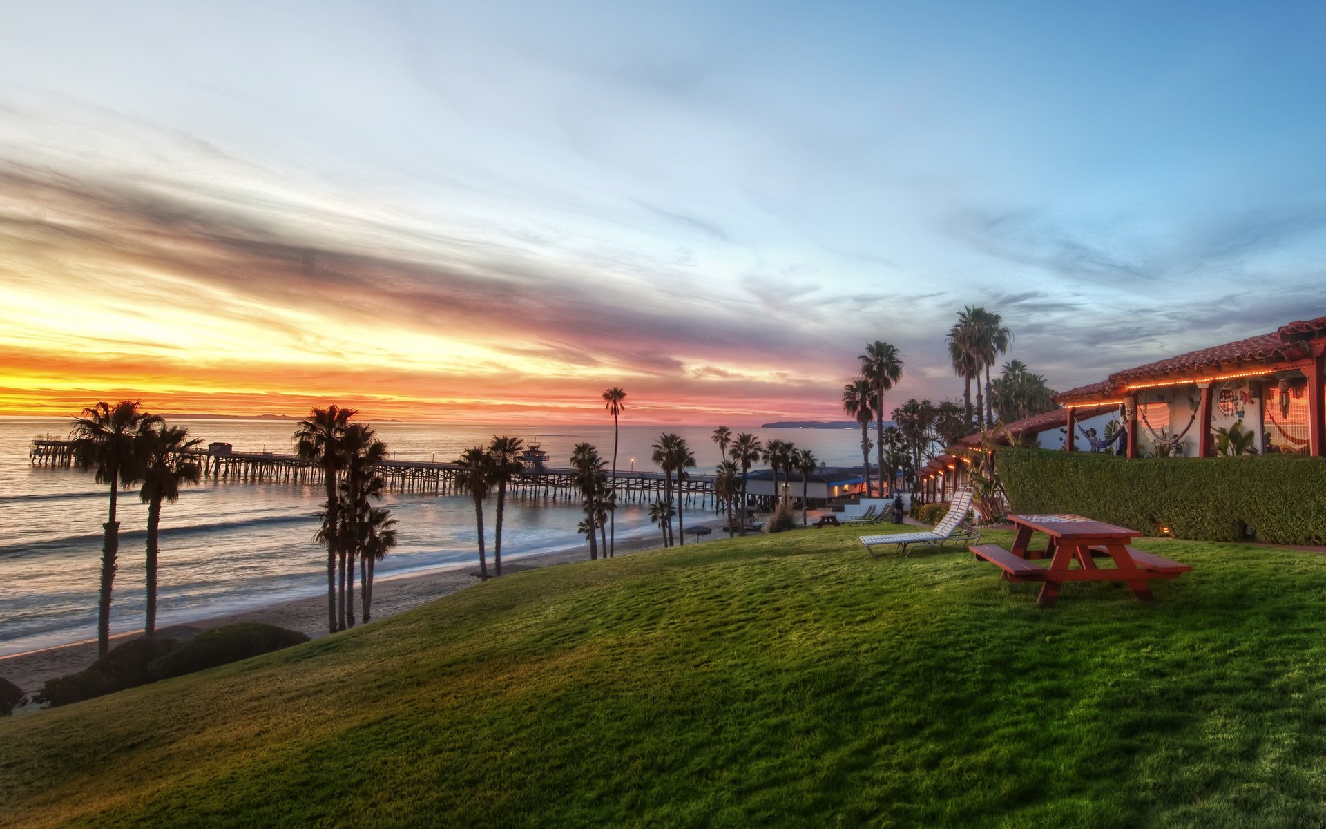 House on the seashore. Beautiful sunset - desktop wallpapers