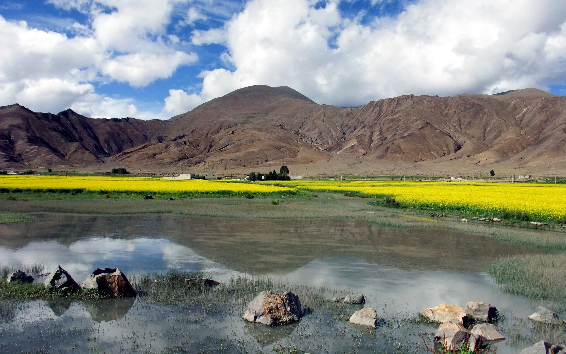 Beautiful landscape. Yellow meadow. Bright sky - wallpapers for your phone