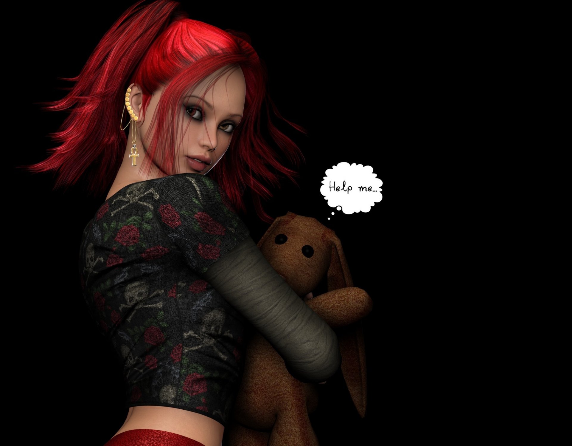 Graphic image of a girl with red hair holding a teddy bearGraphic image of a girl with red hair holding a teddy bear