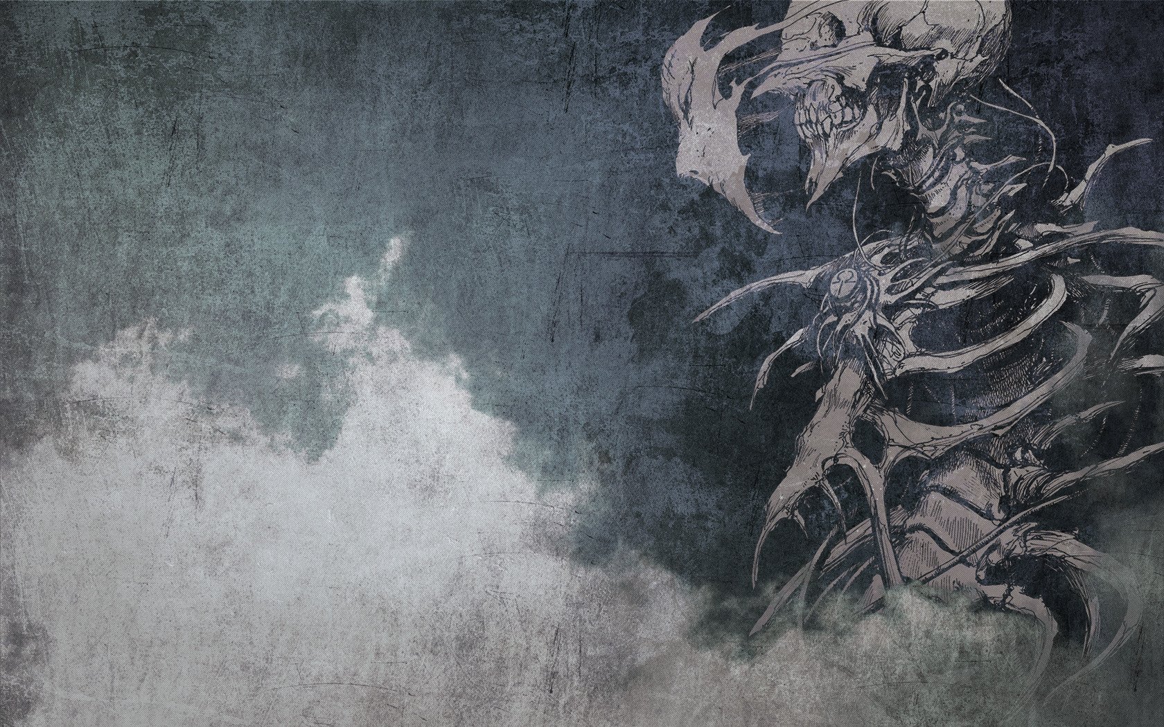 Bones and skull in the form of an apple on a background of flameBones and skull in the form of an apple on a background of flame
