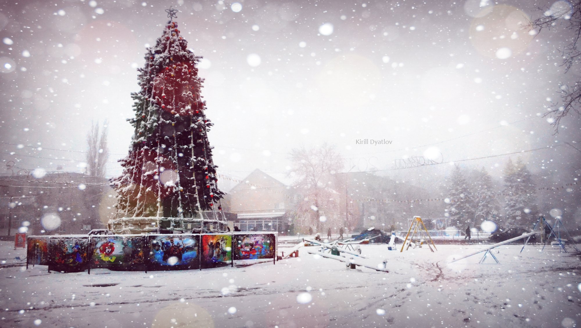 New year's decorated christmas tree on the city squareNew Year's decorated Christmas tree on the city square