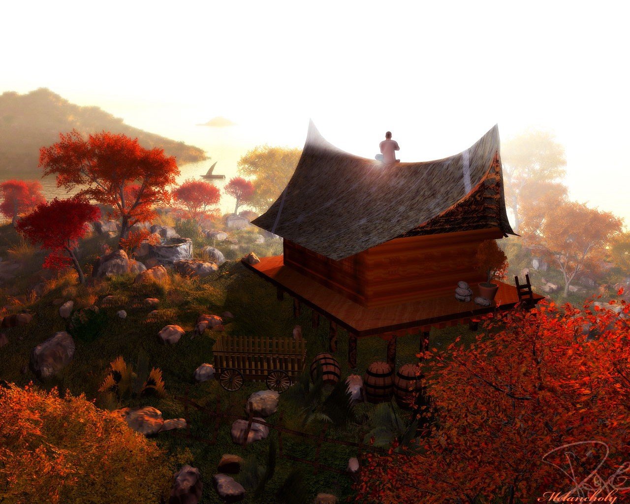 A small house in the mountains surrounded by treesA small house in the mountains surrounded by trees