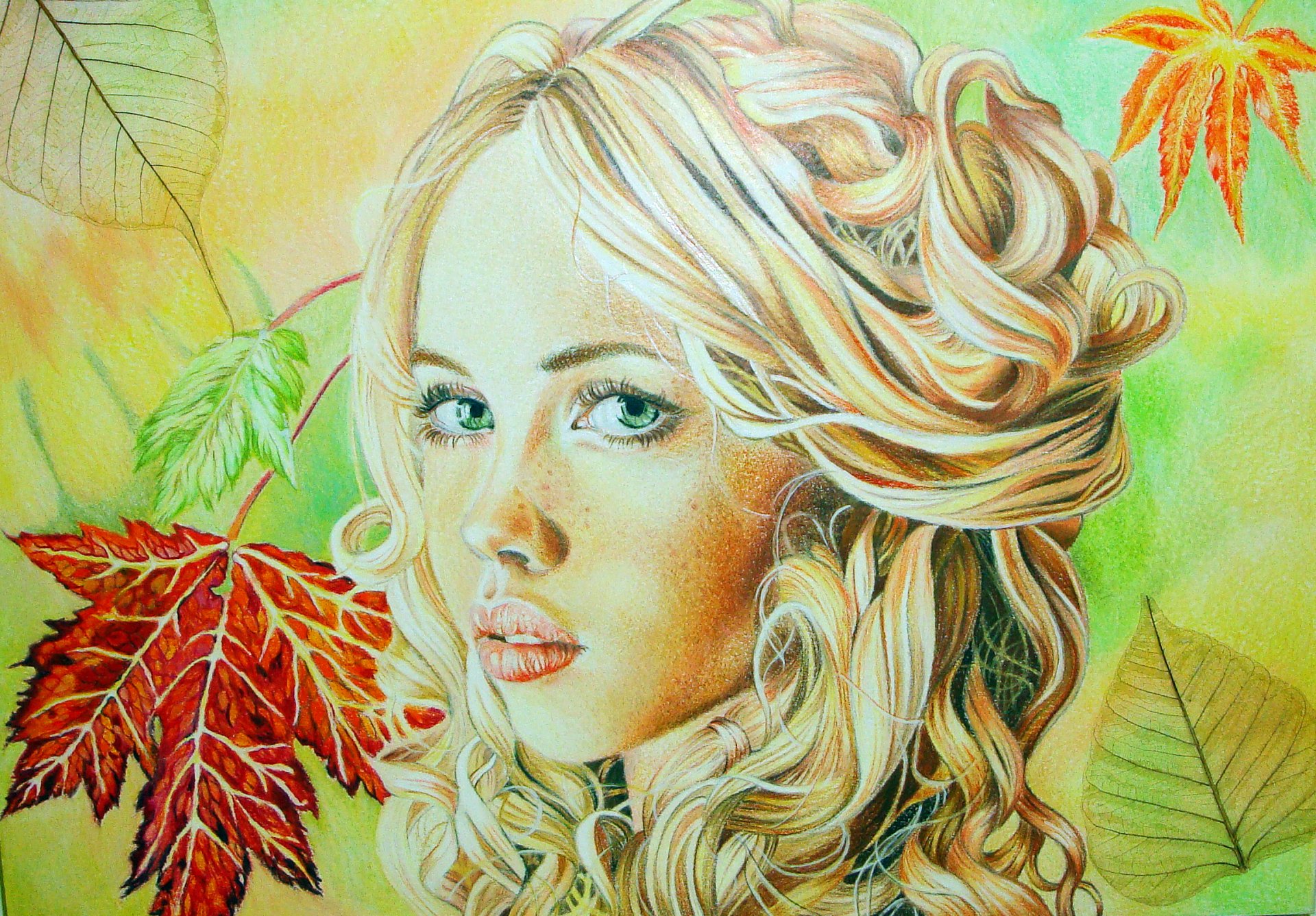 Portrait of a girl in autumn leaves
