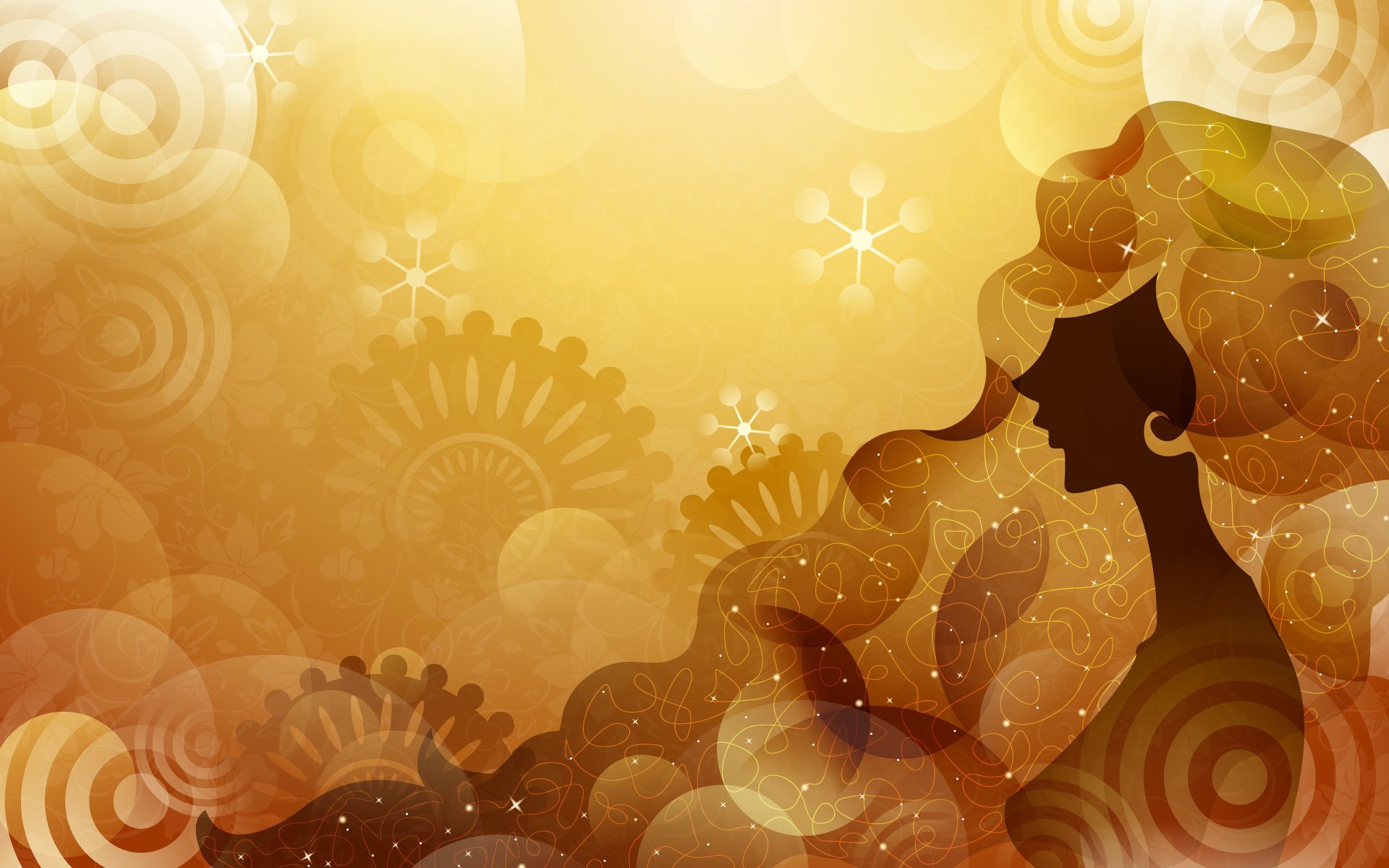 Digital art postcard with a silhouette of a girl with sparkling hair