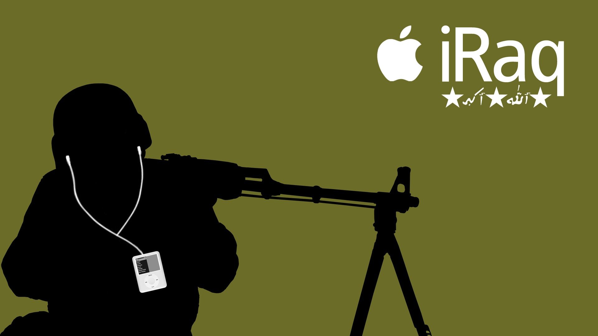 A man with a machine gun on the background of planes and flagsA man with a machine gun on the background of planes and flags