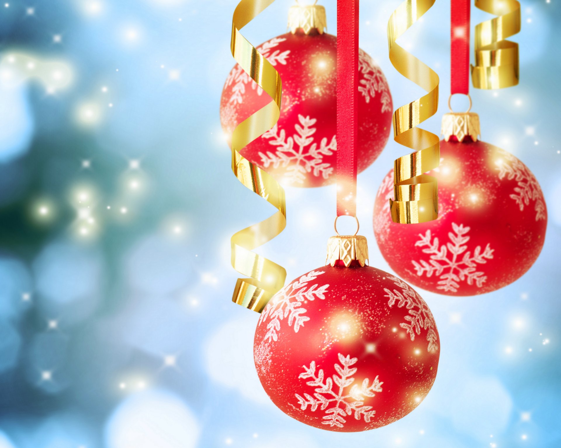 A white ball with a white ribbon on a spruce backgroundA white ball with a white ribbon on a spruce background