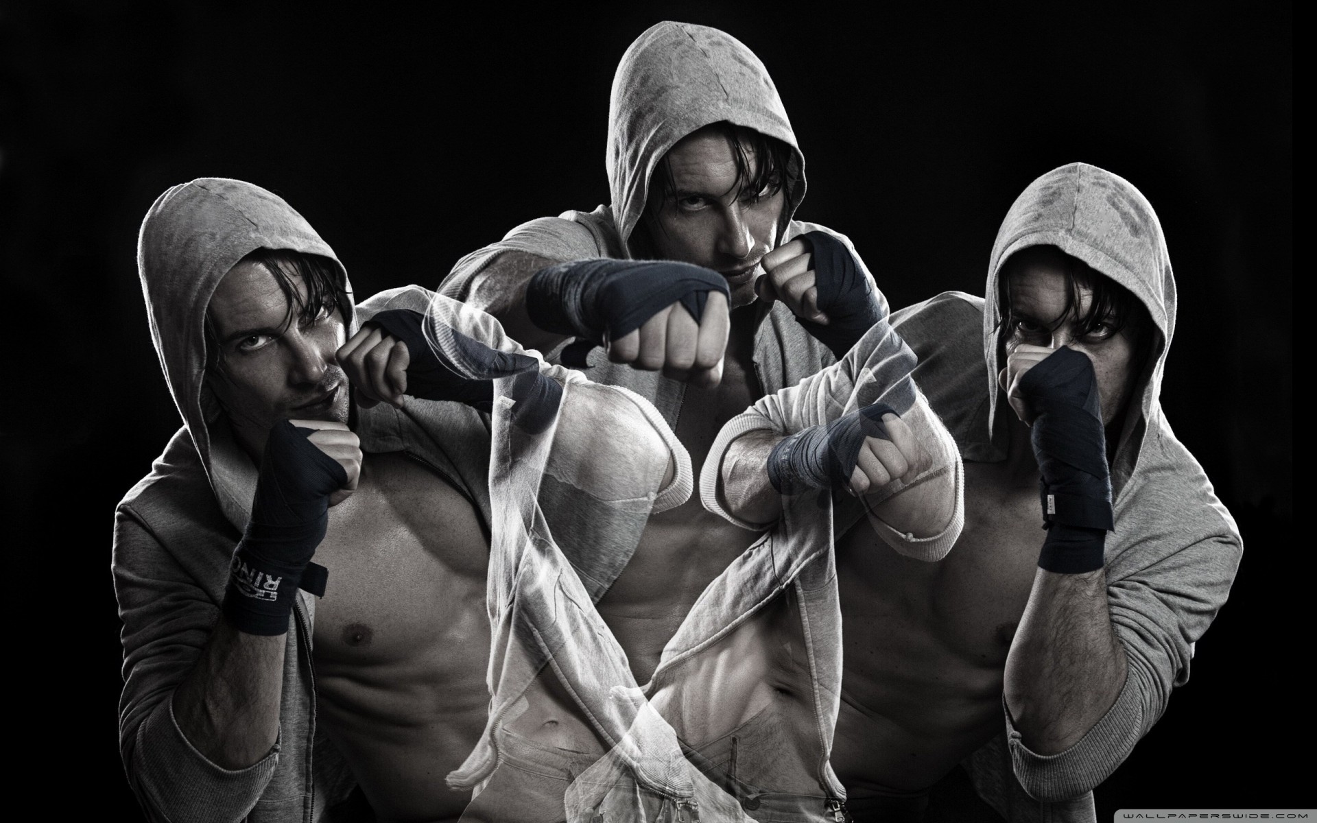 Collage. A fighter in a fighting stance