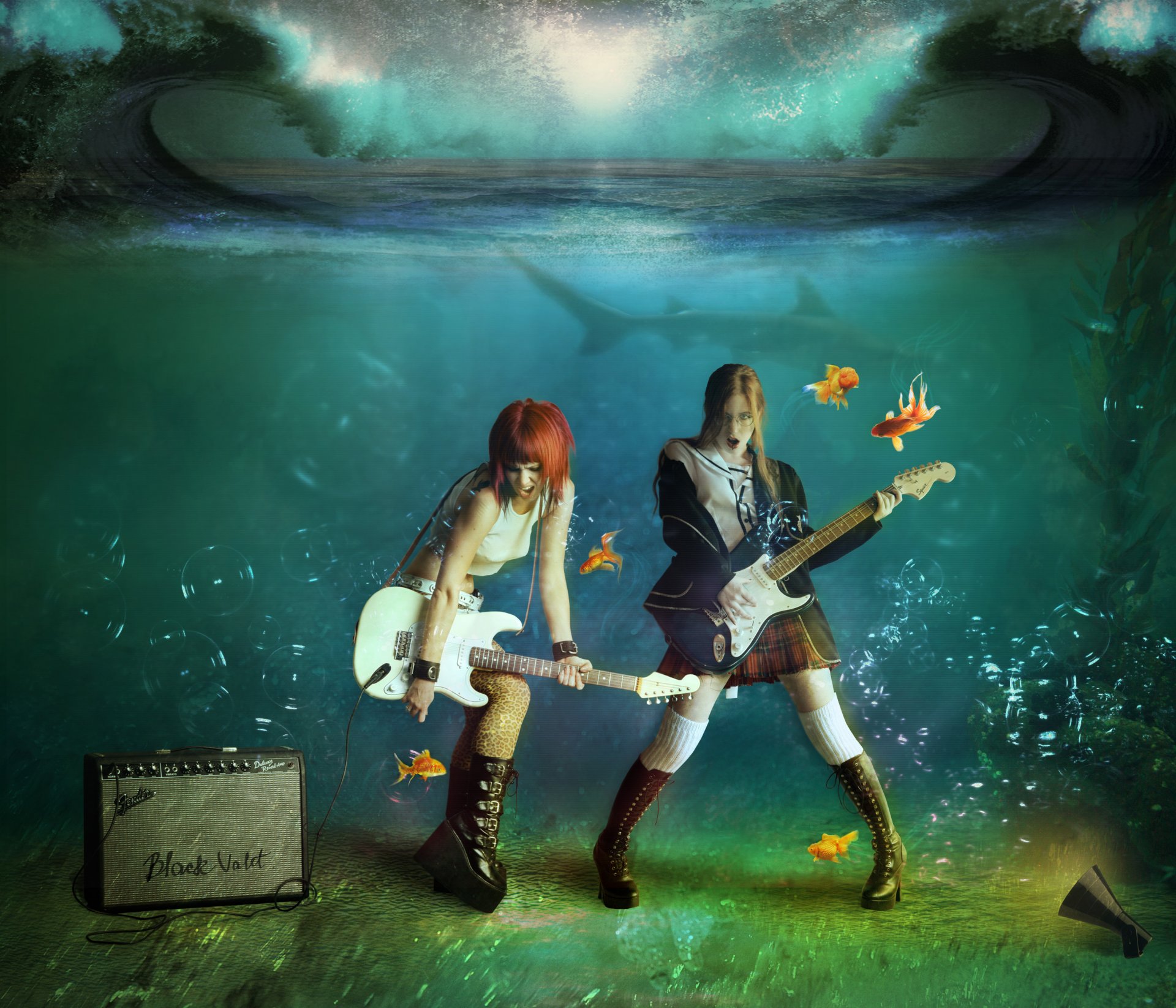 A child under water near the huge eye of an incomprehensible creatureA child under water near the huge eye of an incomprehensible creature