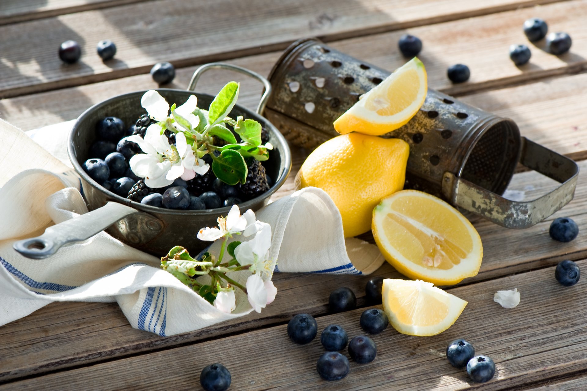 Still life blueberries and lemon on the table
