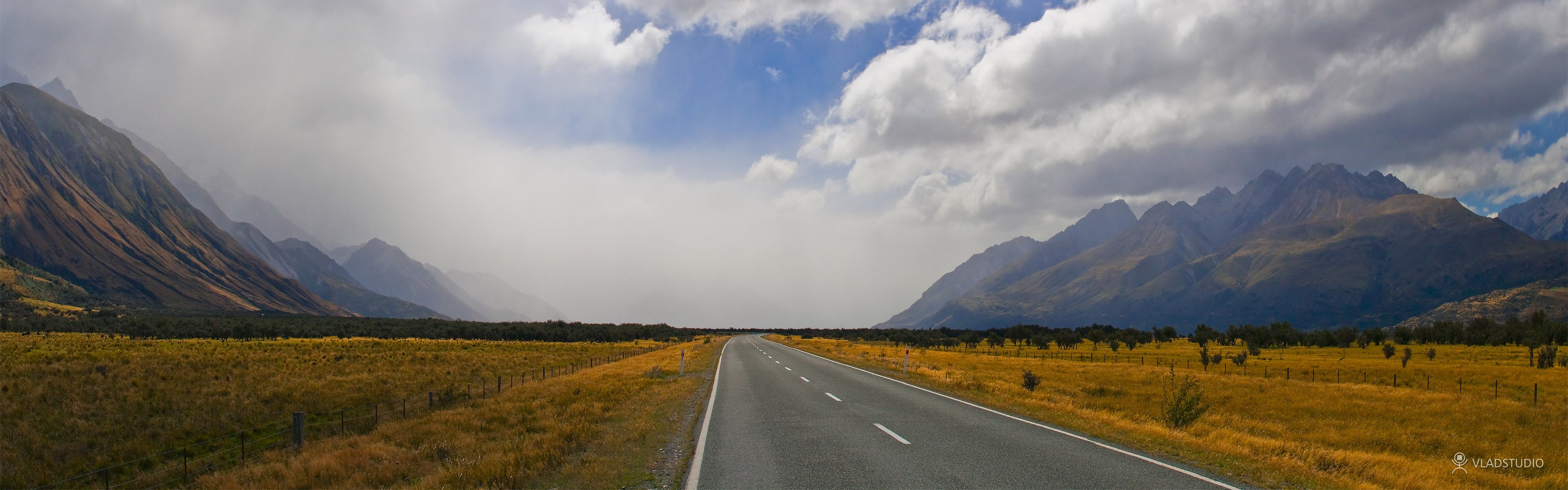 A deserted highway stretching into the horizon among sparse fieldsA deserted highway stretching into the horizon among sparse fields