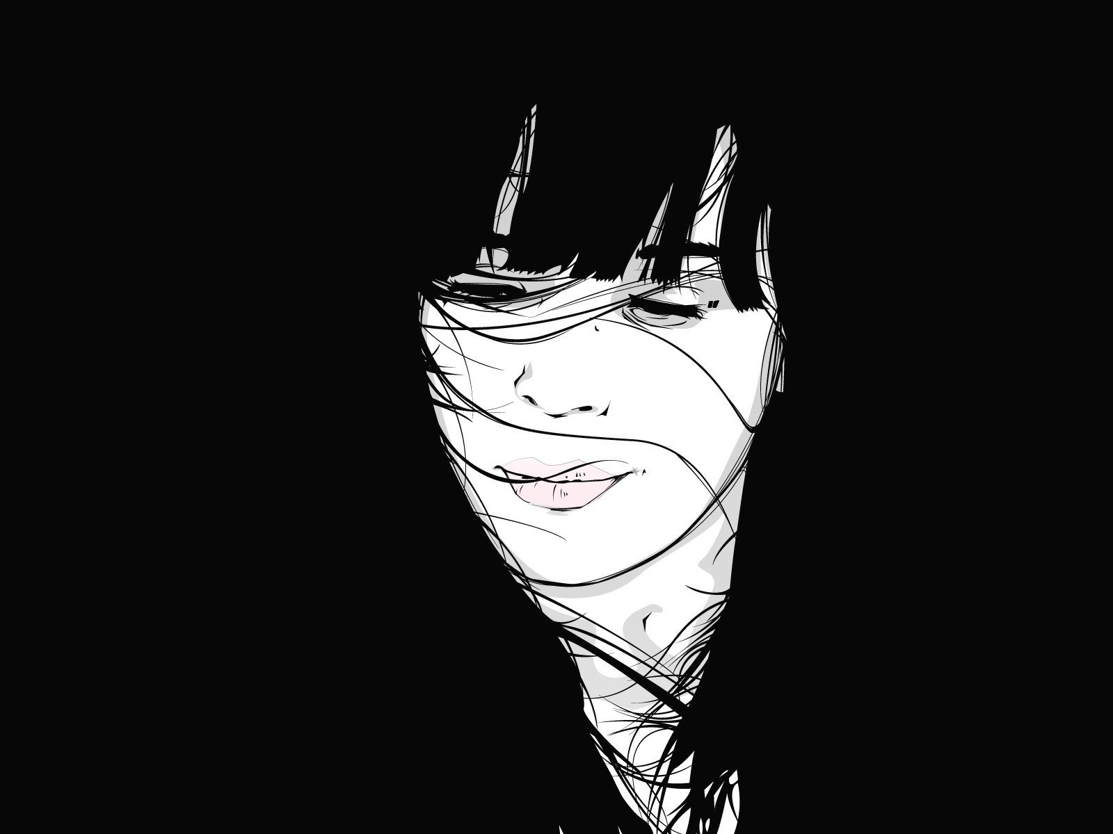 Black and white photo of a girl with a short haircutBlack and White photo of a girl with a short haircut