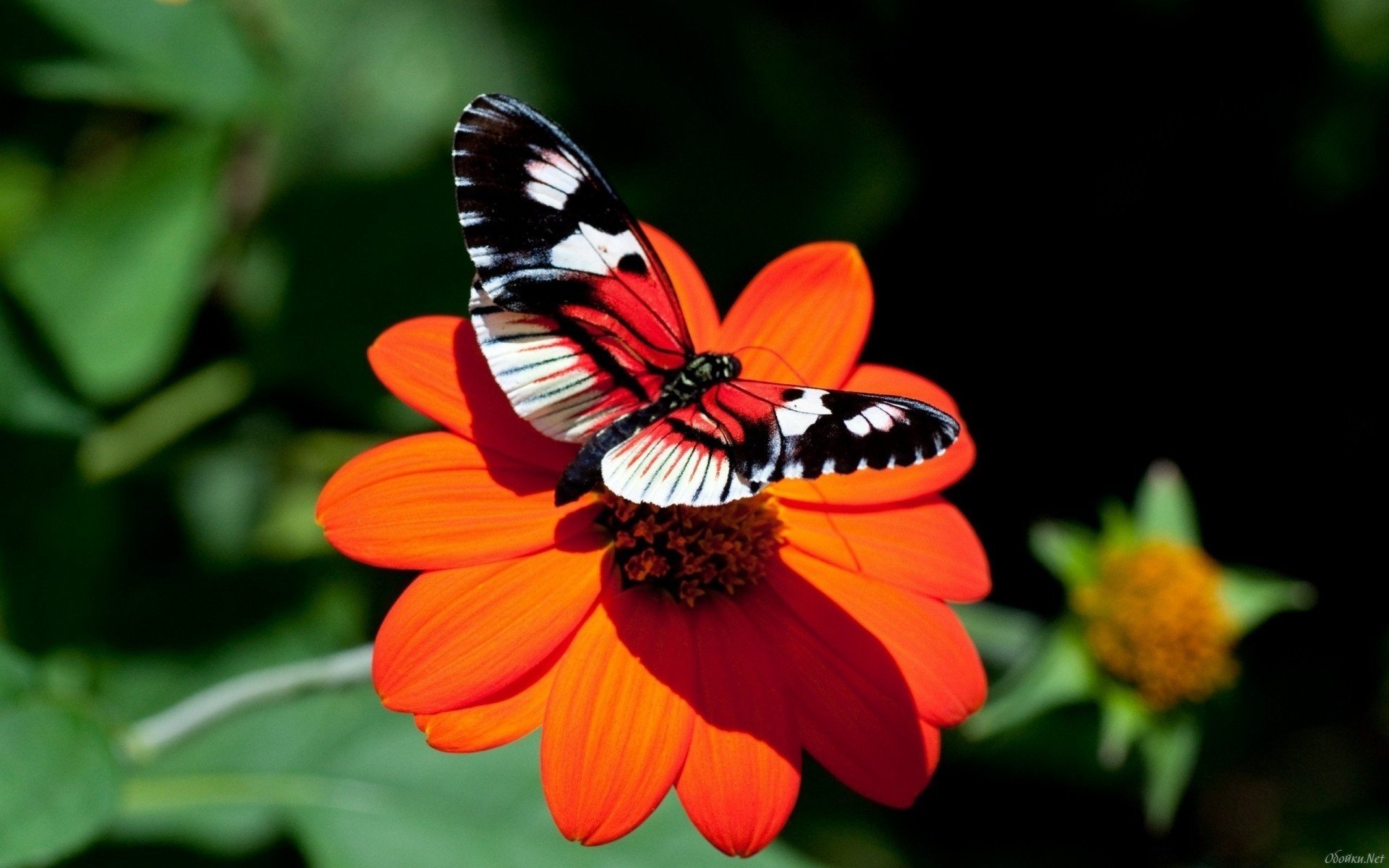 Mottled butterfly on a red flower