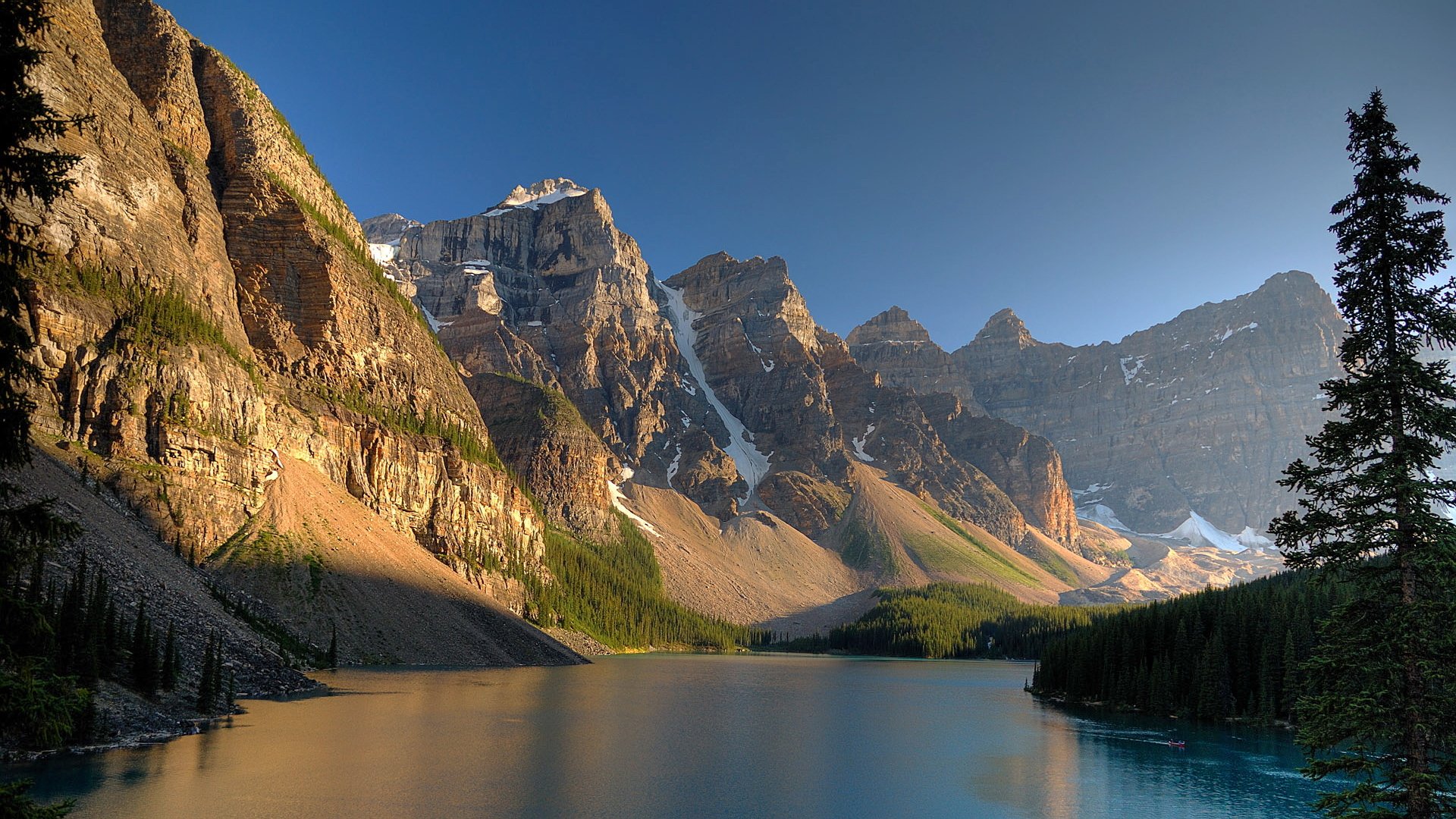 Blue lake on the background of snow-capped mountainsBlue lake on the background of snow-capped mountains