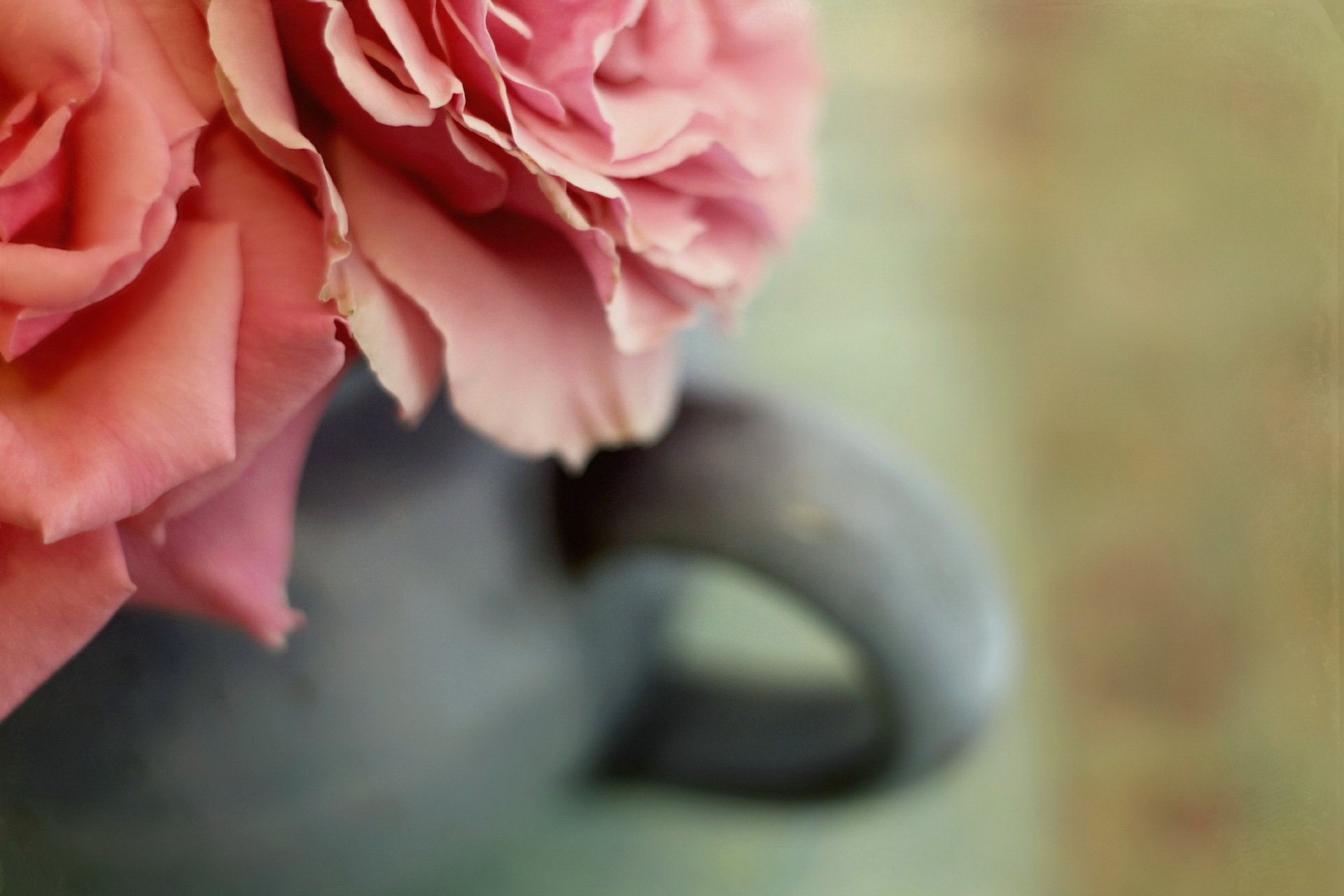 Reflection of the sun in a cup of tea and a statuette of the Eiffel Tower next to it