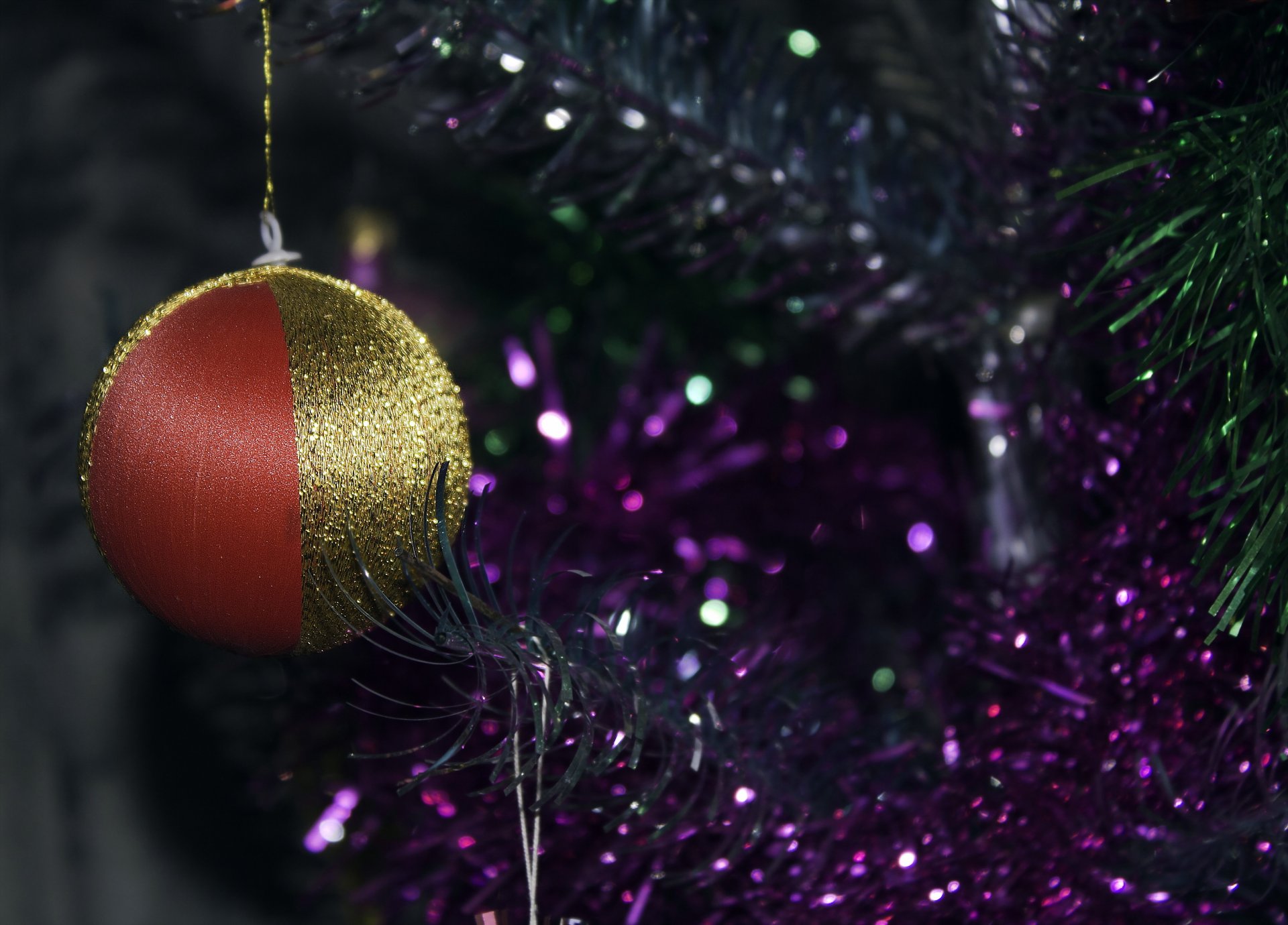 Christmas tree toy on the background of a christmas tree with garlandsChristmas tree toy on the background of a Christmas tree with garlands