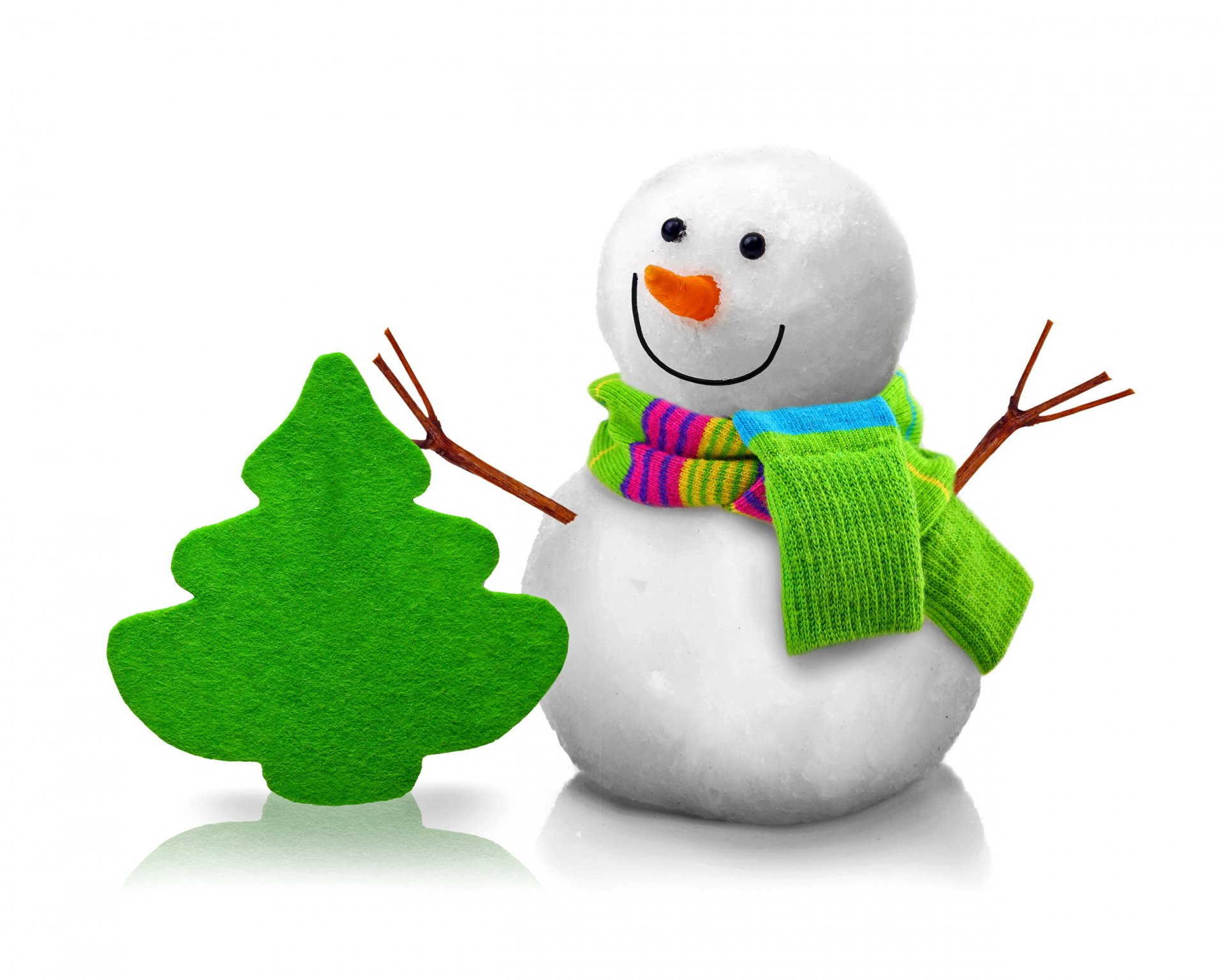 Christmas greetings from a knitted snowman on the background of a fir branchChristmas greetings from a knitted snowman on the background of a fir branch