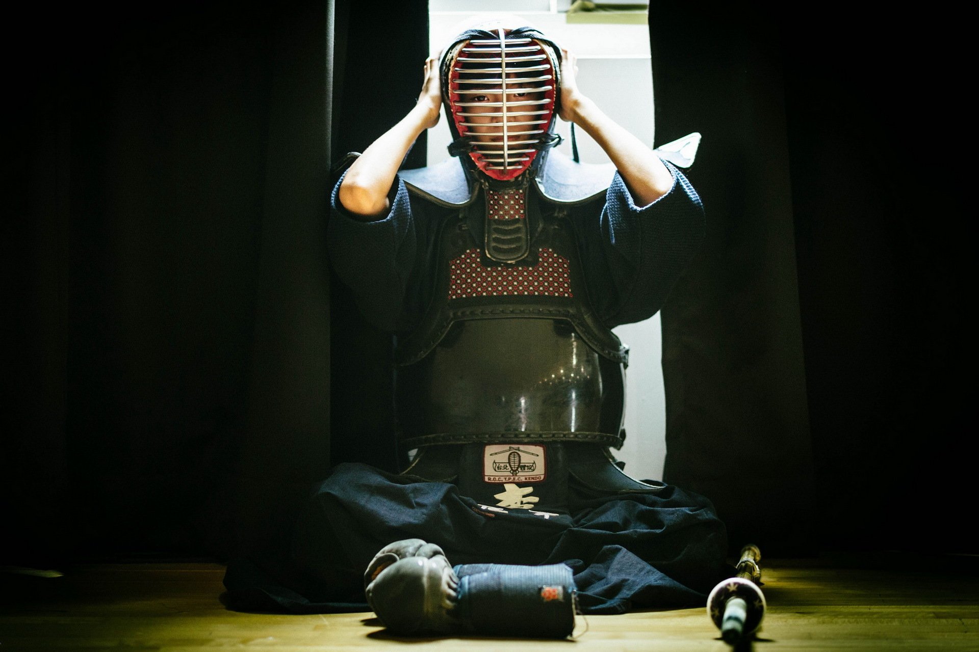 A girl in uniform for martial arts classes