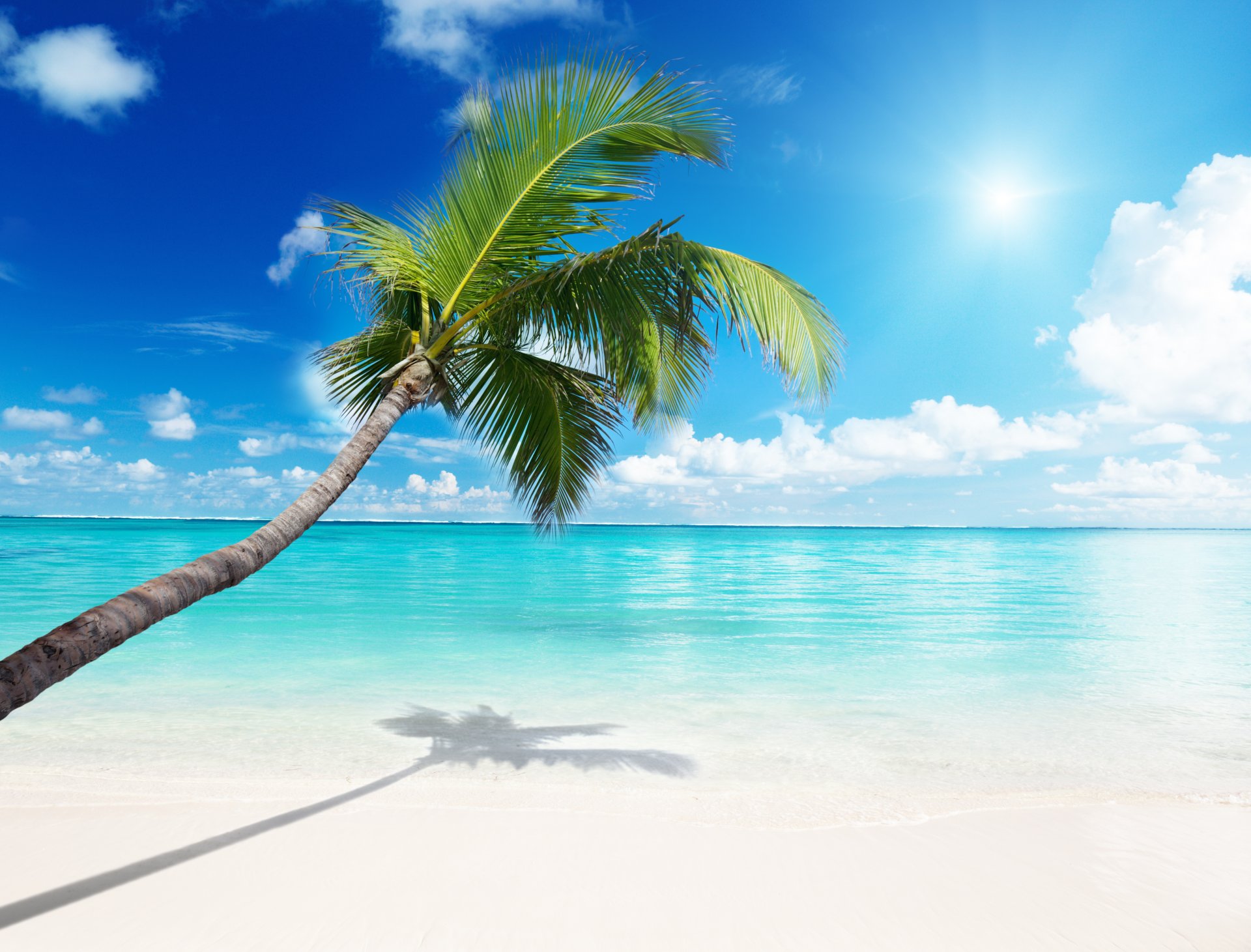 Snow-white beach with palm trees and clear sea