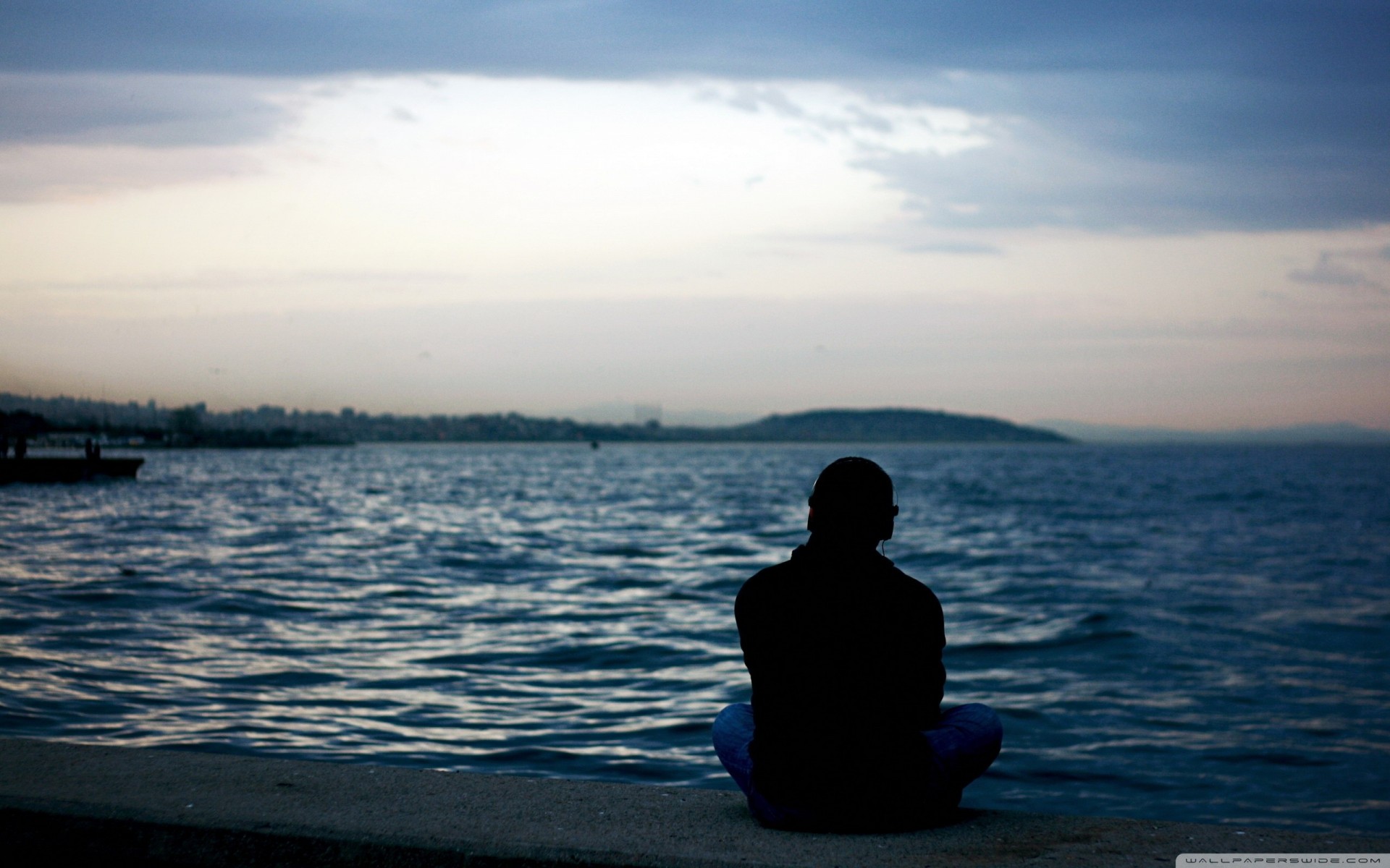 Evening landscape of a pond and flowers on the background of skyscrapersEvening landscape of a pond and flowers on the background of skyscrapers