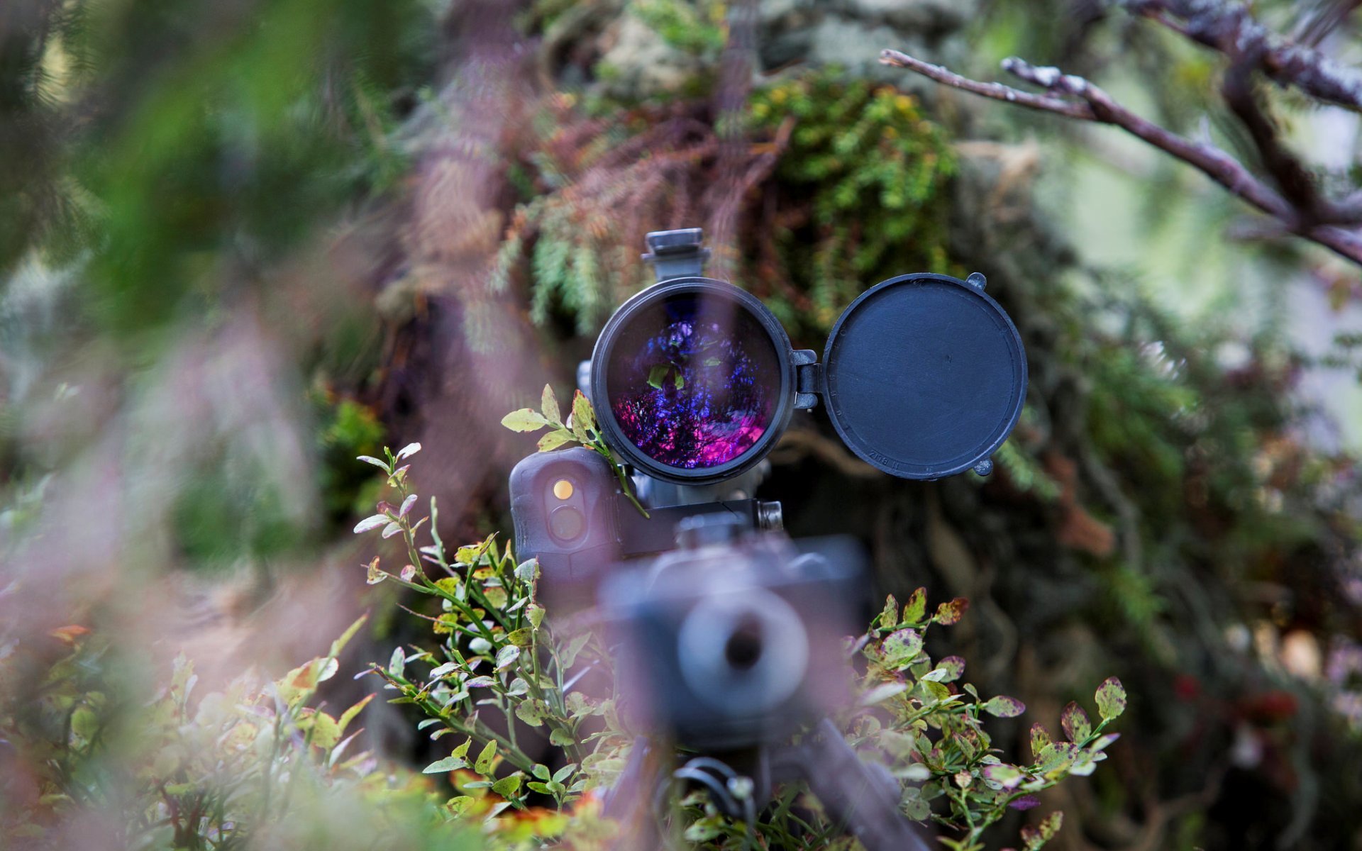 A soldier lies in ambush with a weapon