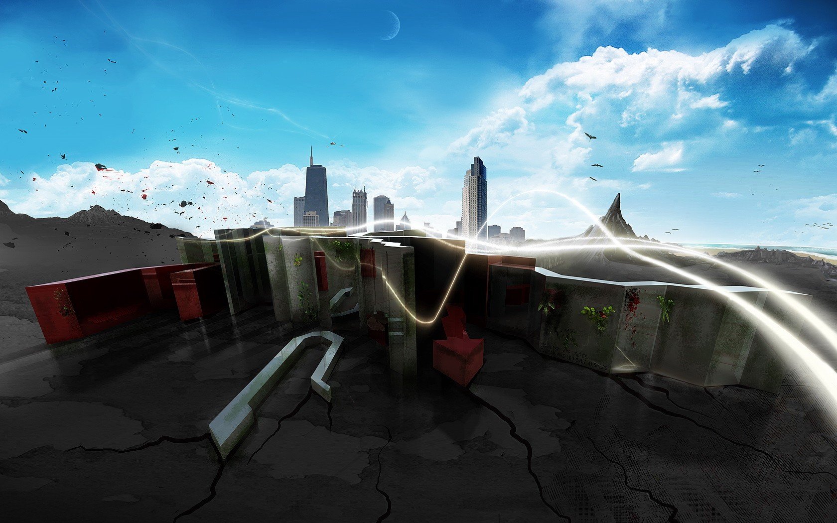 A giant structure on the river in the wreckage of the patternA giant structure on the river in the wreckage of the pattern