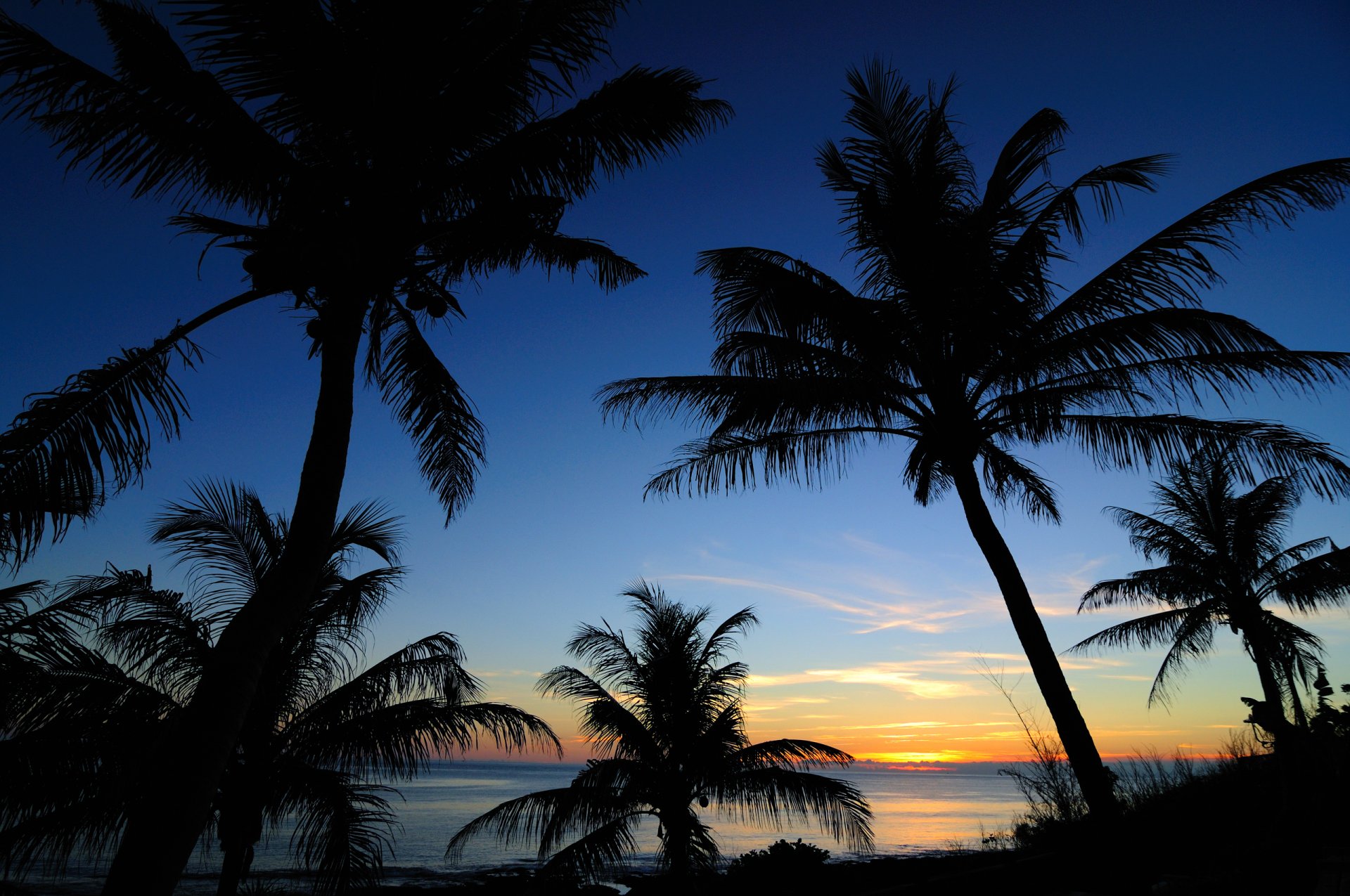 Sunrise on the sea among palm trees