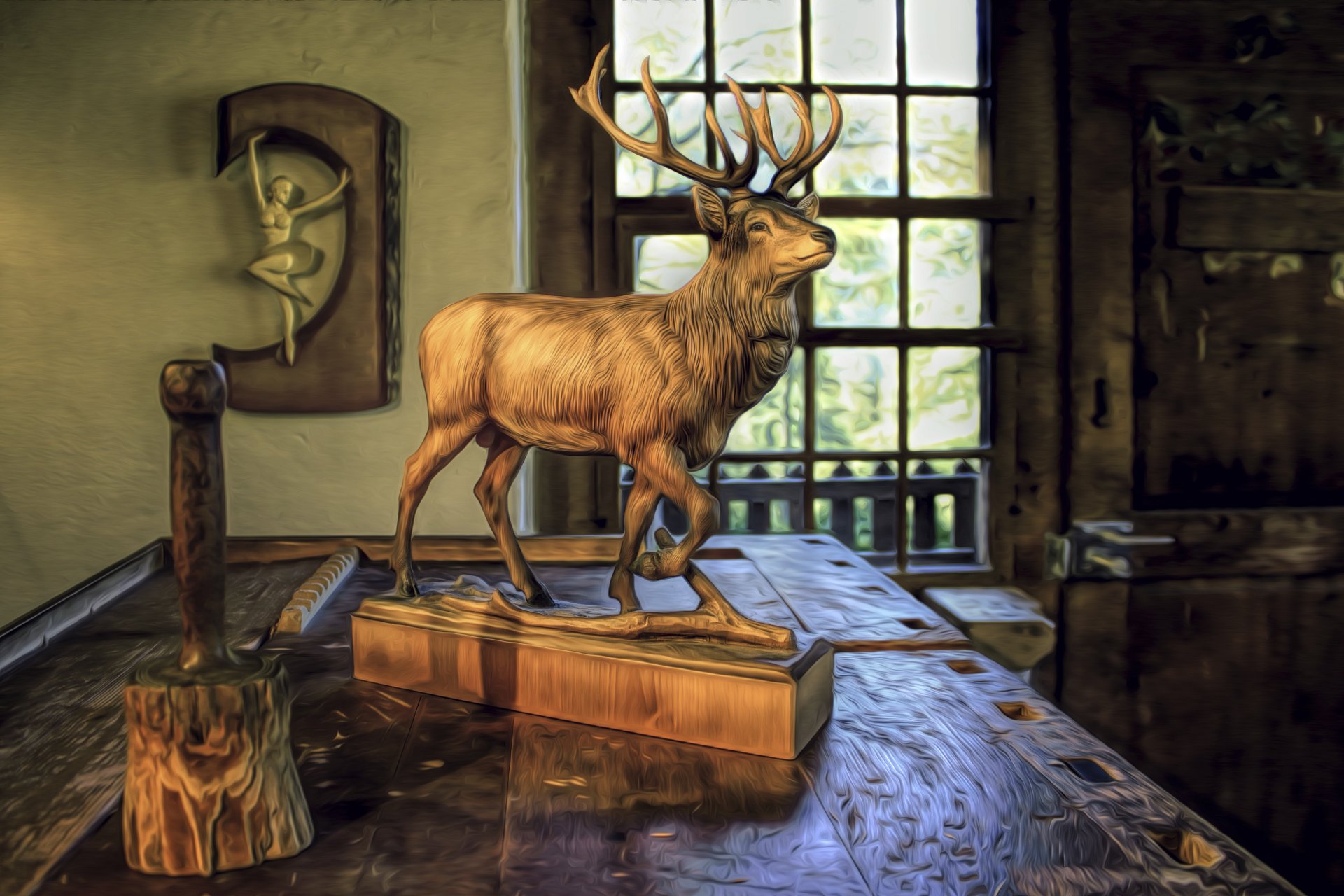 Dawn in the forest deer on the background of this beautyDawn in the forest deer on the background of this beauty