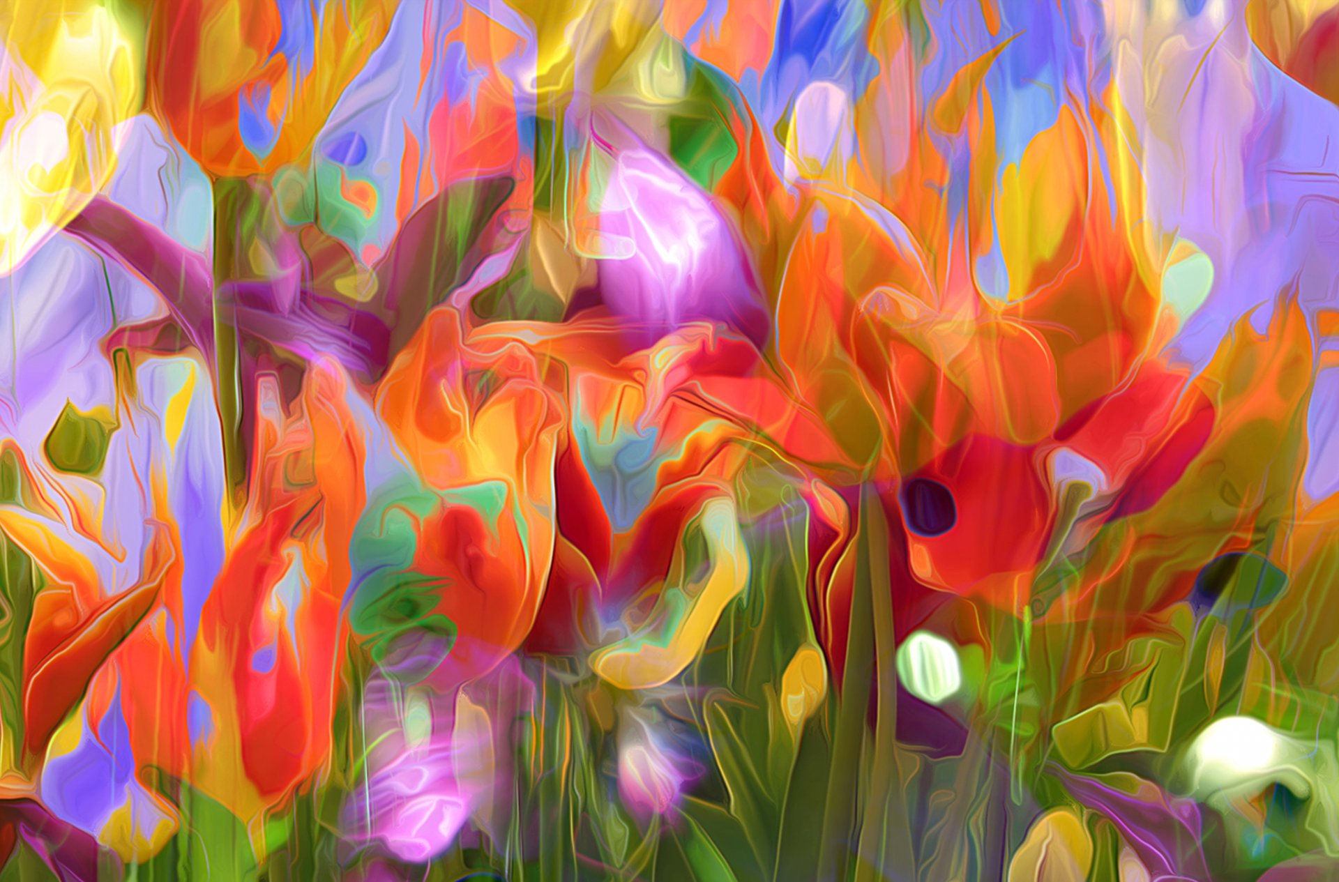A meadow of juicy flowers in the rendering genre