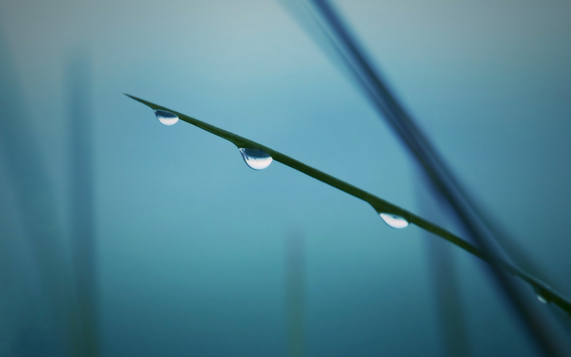 Three drops on a blade of grass