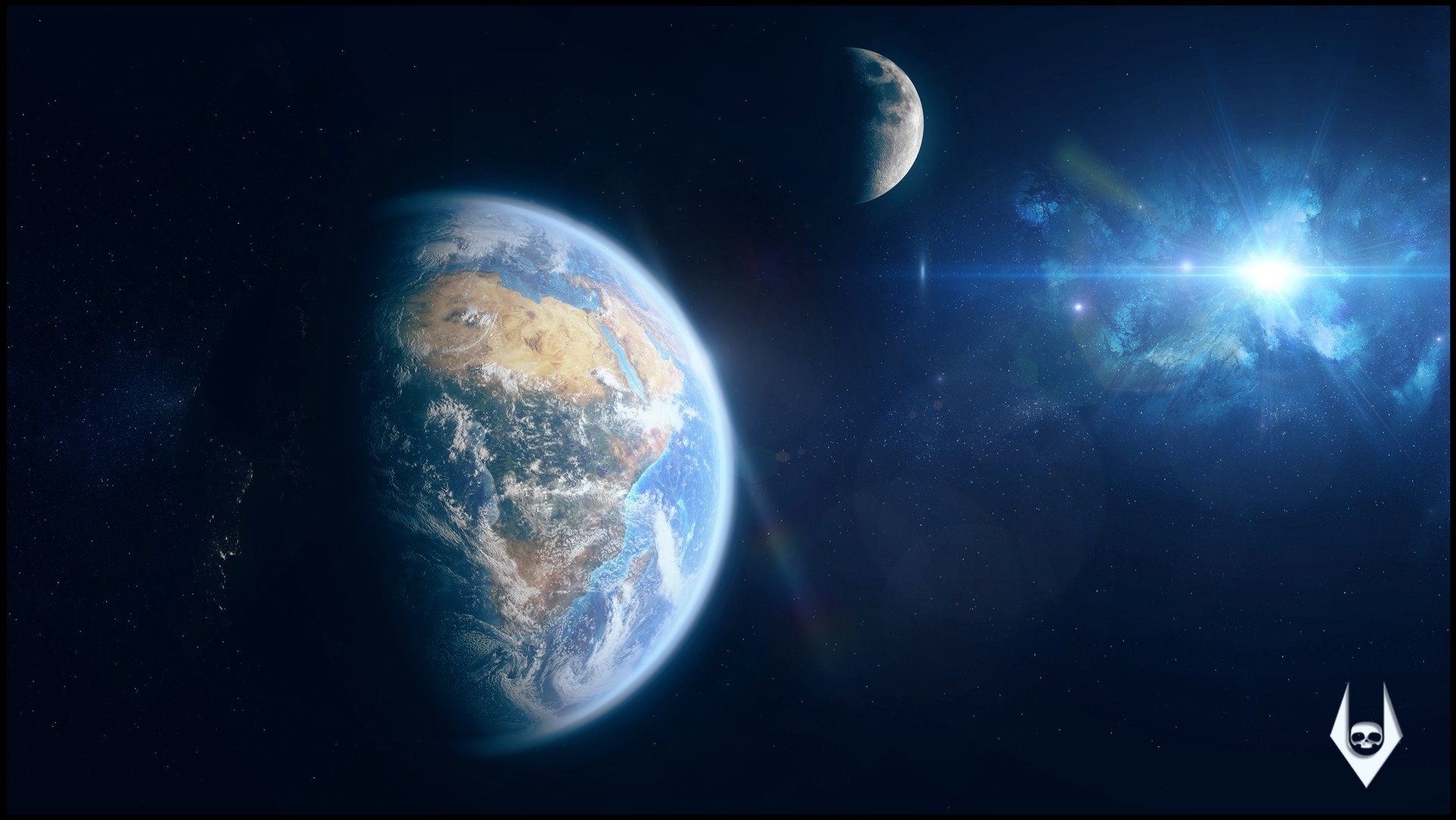 Cosmos planet and satellite from earth glare of lightCosmos planet and satellite from earth glare of light