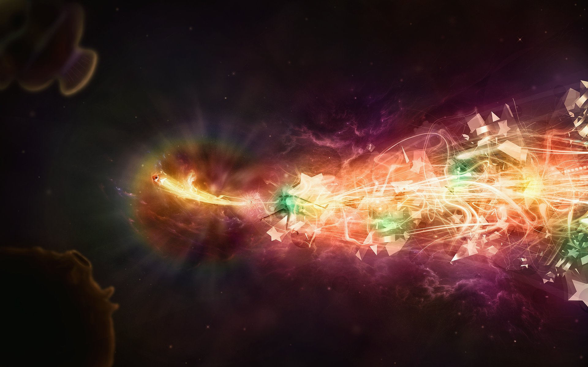 The red stream of energy flies away from the lightThe red stream of energy flies away from the light