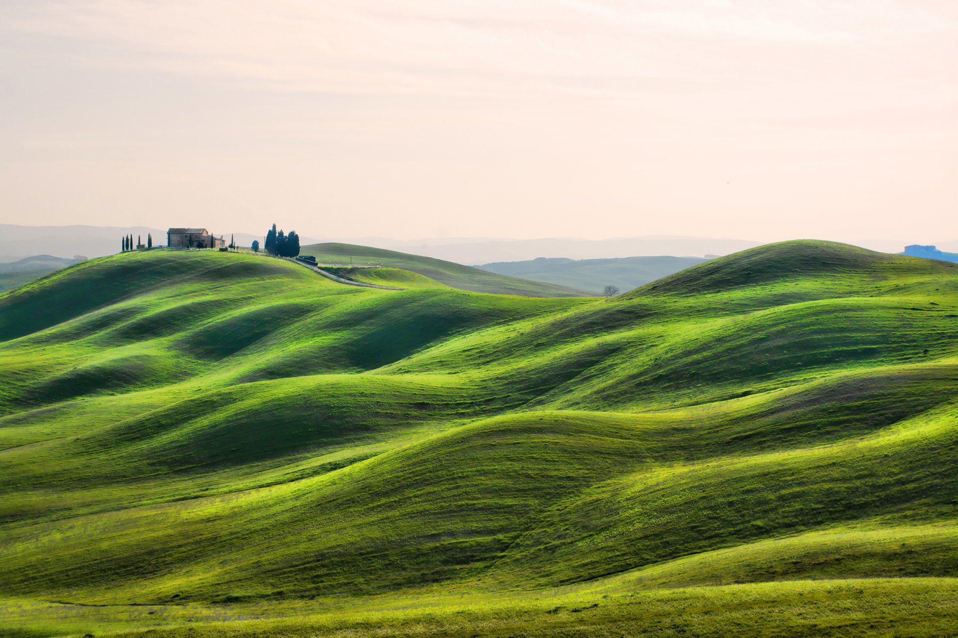 England, gloucestershire. a house in a field among trees. morning, dawnEngland, Gloucestershire. A house in a field among trees. Morning, dawn