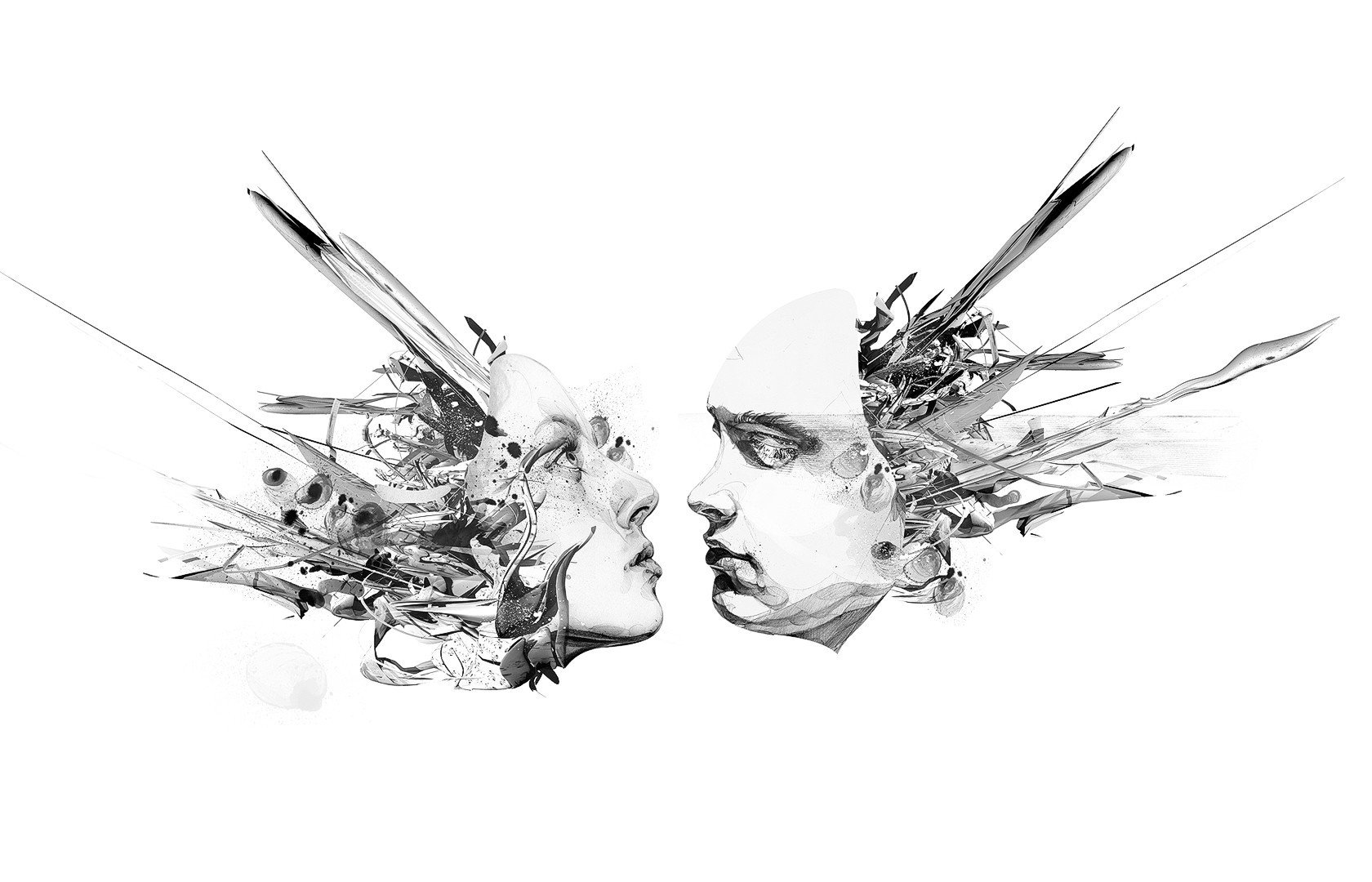 The face of a girl with blue hair wearing glasses on the background of abstraction