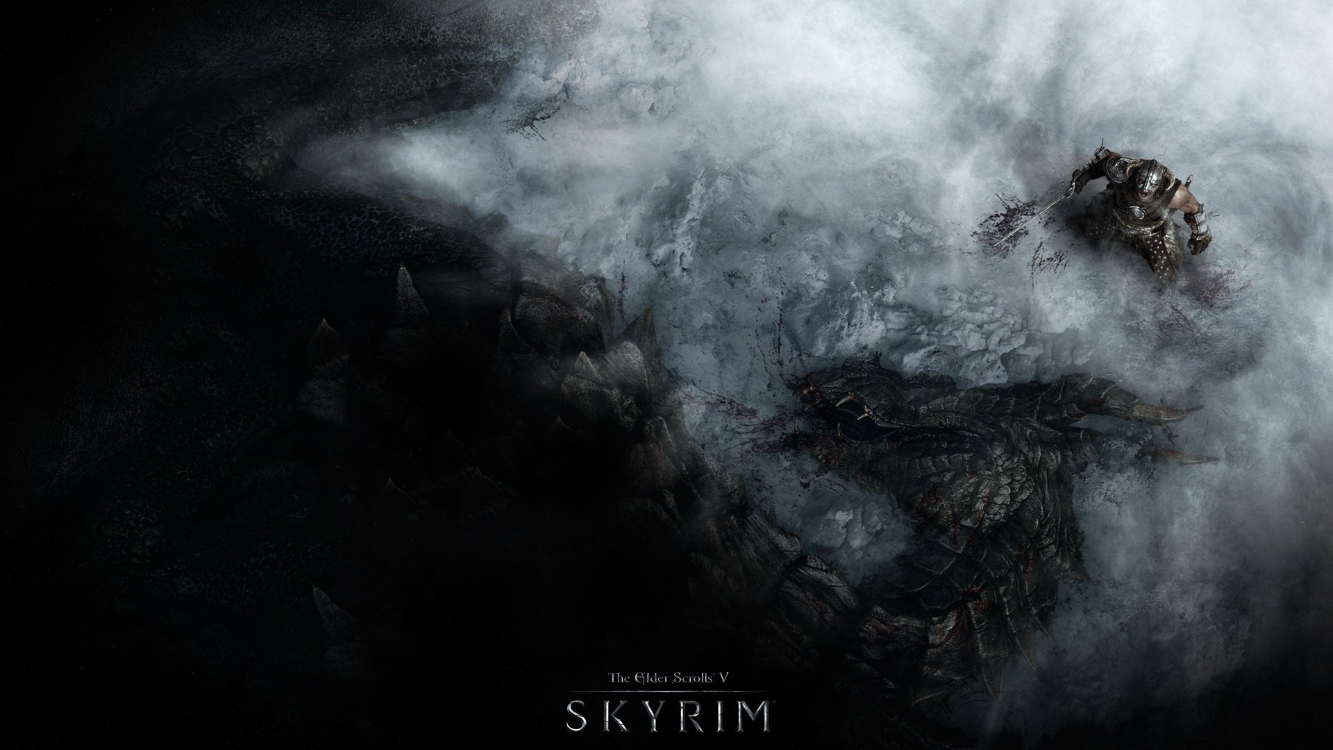 A hand-drawn frame with a dragon from Skyrim in the mountains