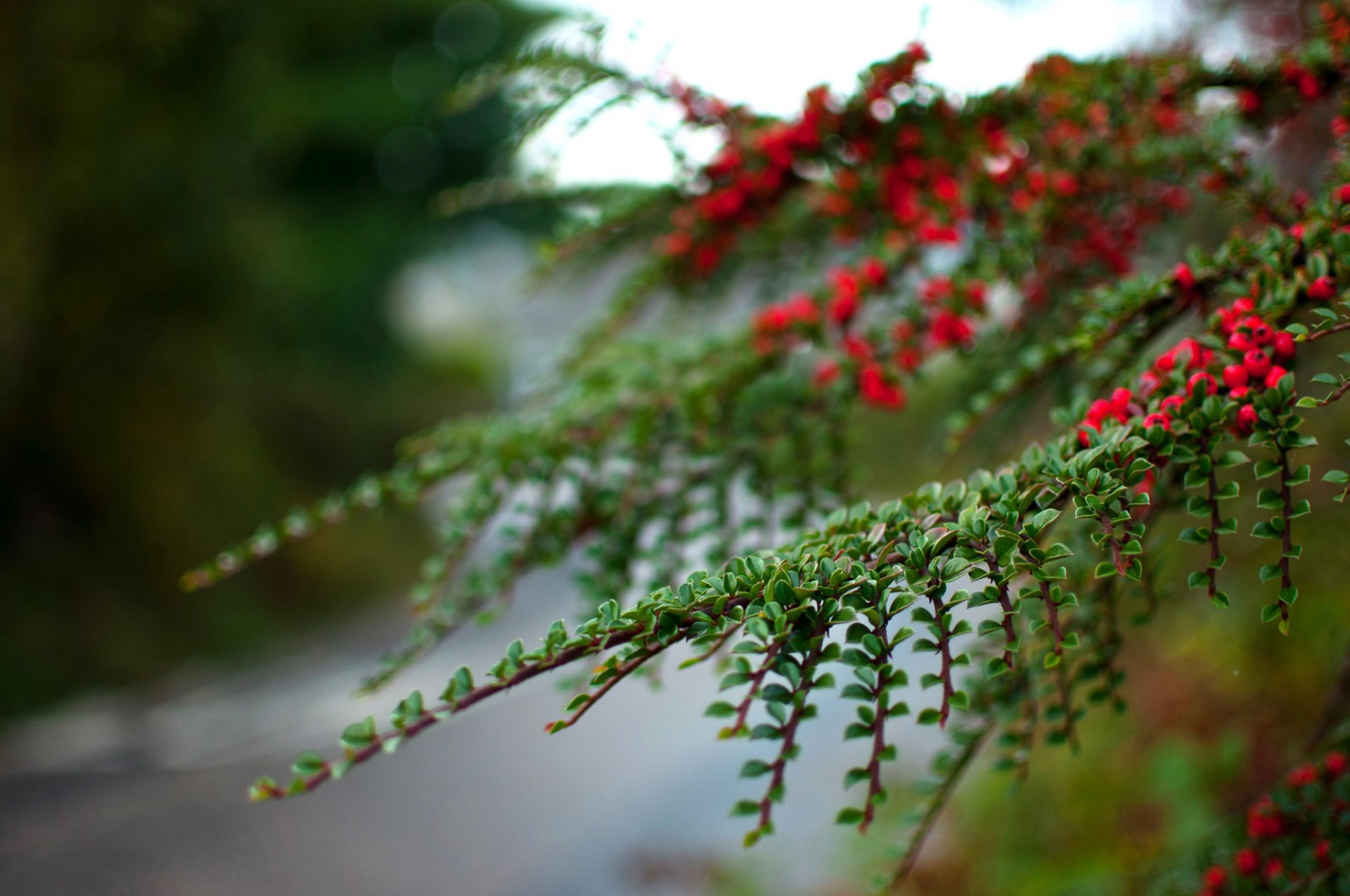 Macro shooting of a branch with leaves and berries