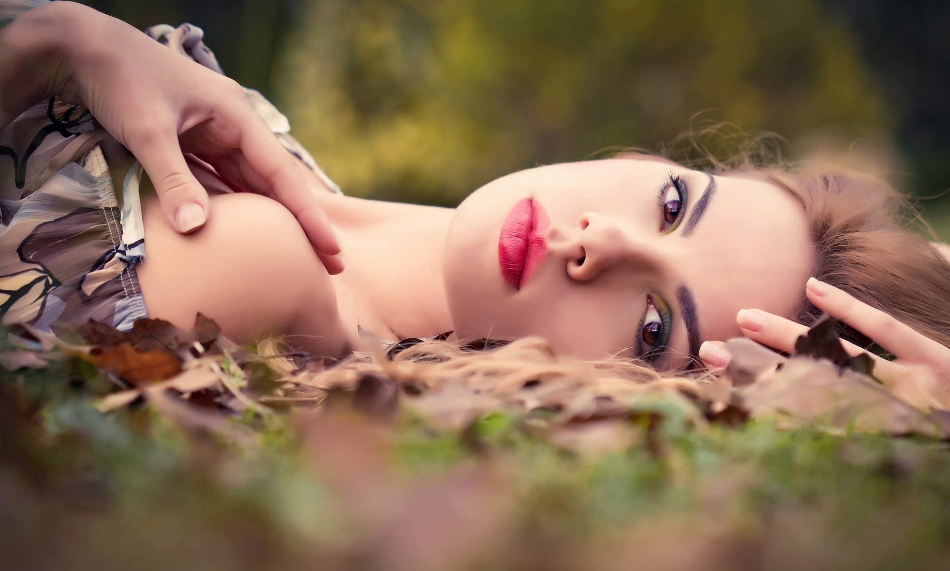 A girl with makeup in nature in autumn