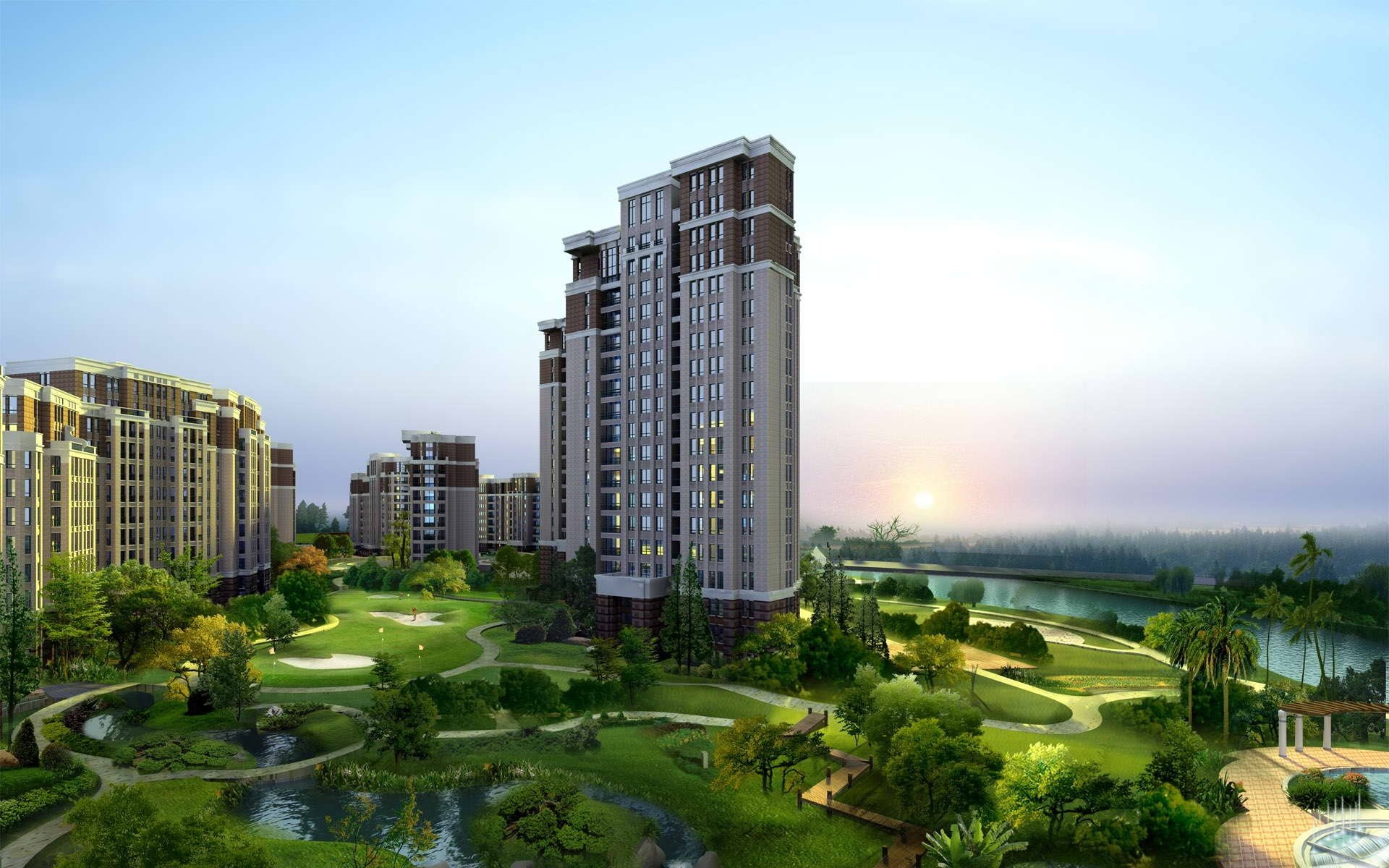 An ancient castle surrounded by lush park greenery on a sunny dayAn ancient castle surrounded by lush park greenery on a sunny day