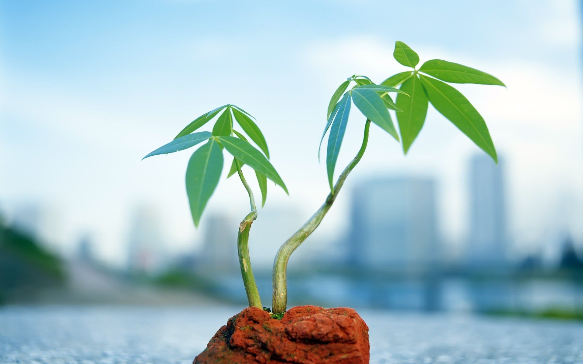 Photo of a beautiful fiery sunset and the silhouette of a plant