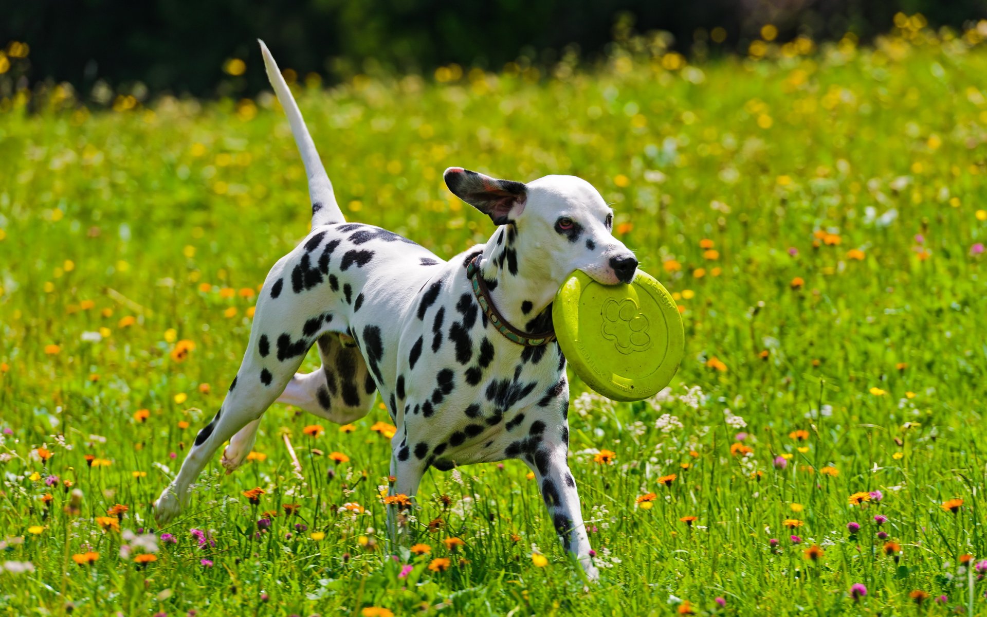 Dolmatin plays with a flying saucer