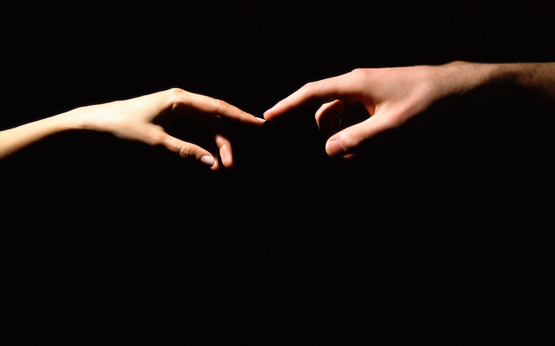 A girl with long hair stands with her hand outstretchedA girl with long hair stands with her hand outstretched
