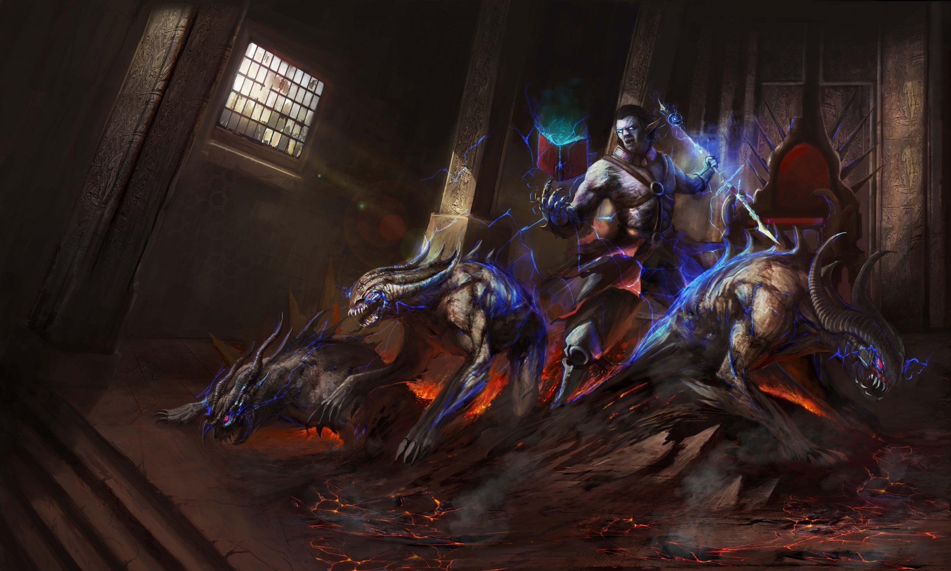 A demon with a shield and a sword, risen from the lavaA demon with a shield and a sword, risen from the lava