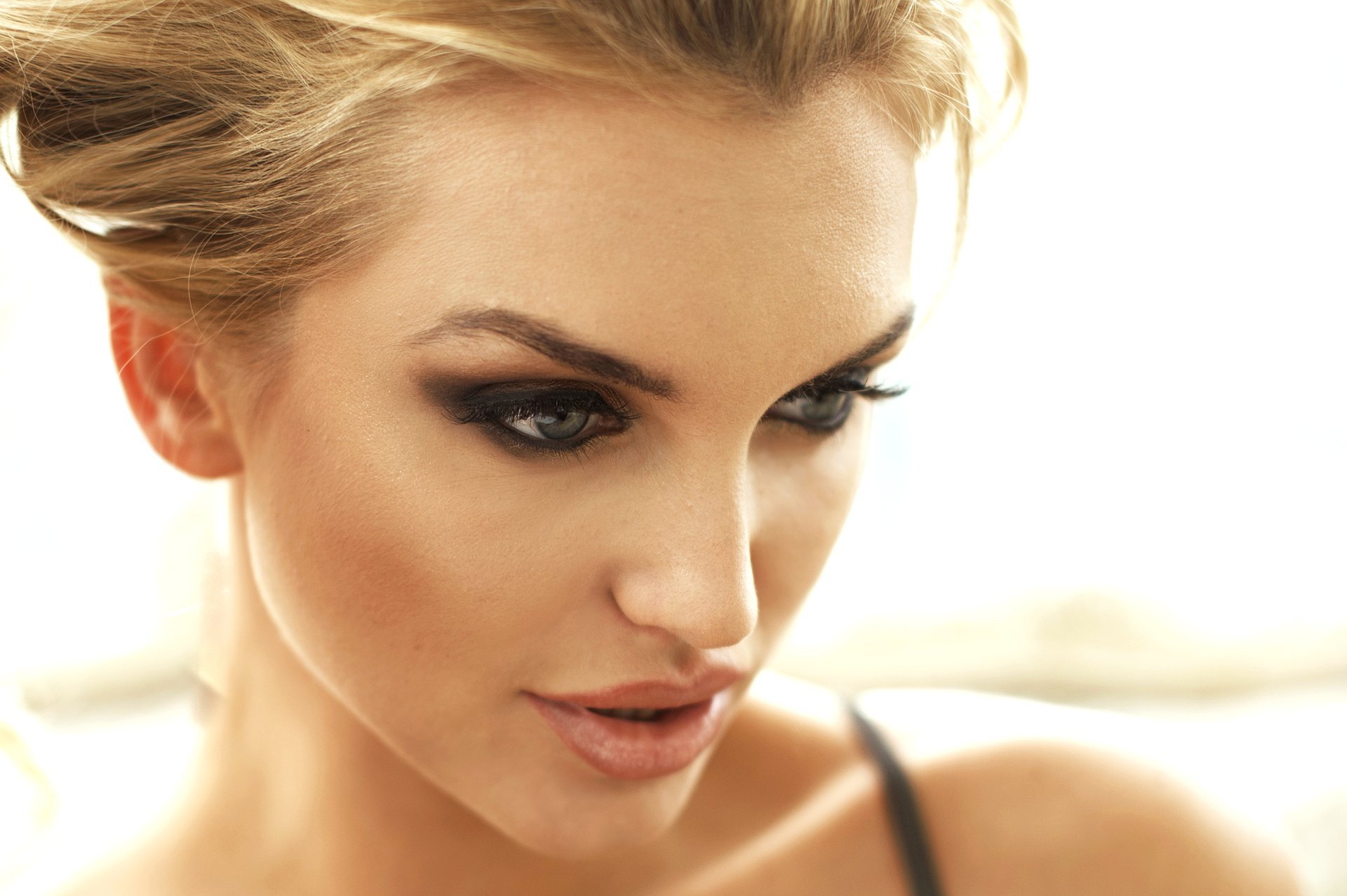 Beautiful blue-eyed brown-haired model emily rudd, covering her left eye with a strand of hair, looks sweetly into the frameBeautiful blue-eyed brown-haired model Emily Rudd, covering her left eye with a strand of hair, looks sweetly into the frame