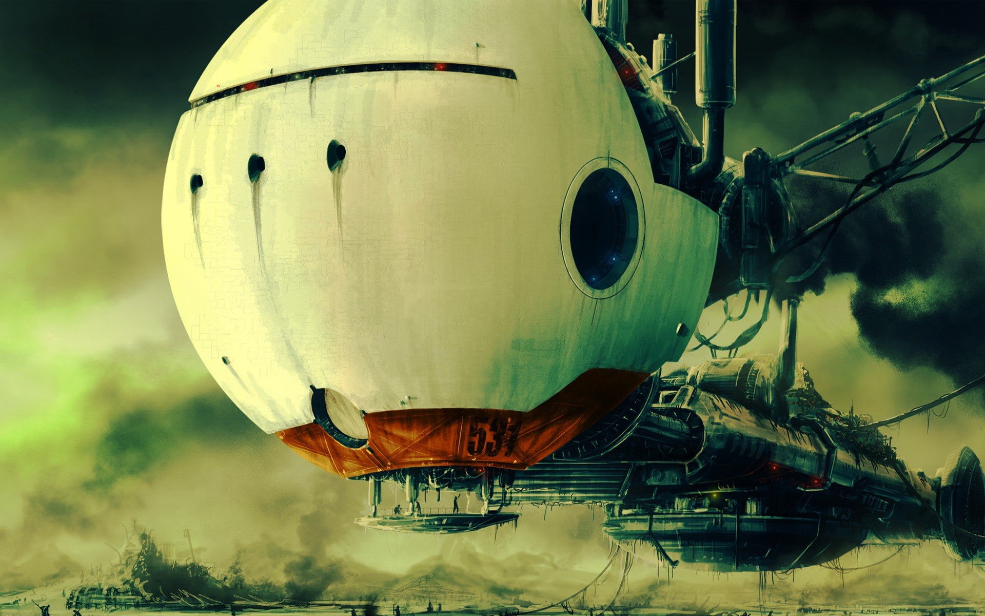The ship sails on the sea against the background of thick cloudsThe ship sails on the sea against the background of thick clouds