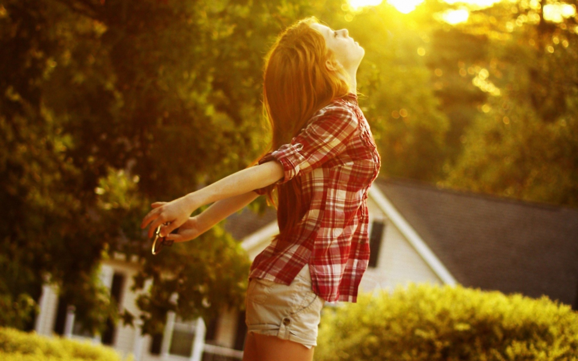 Girl in short shorts at sunset