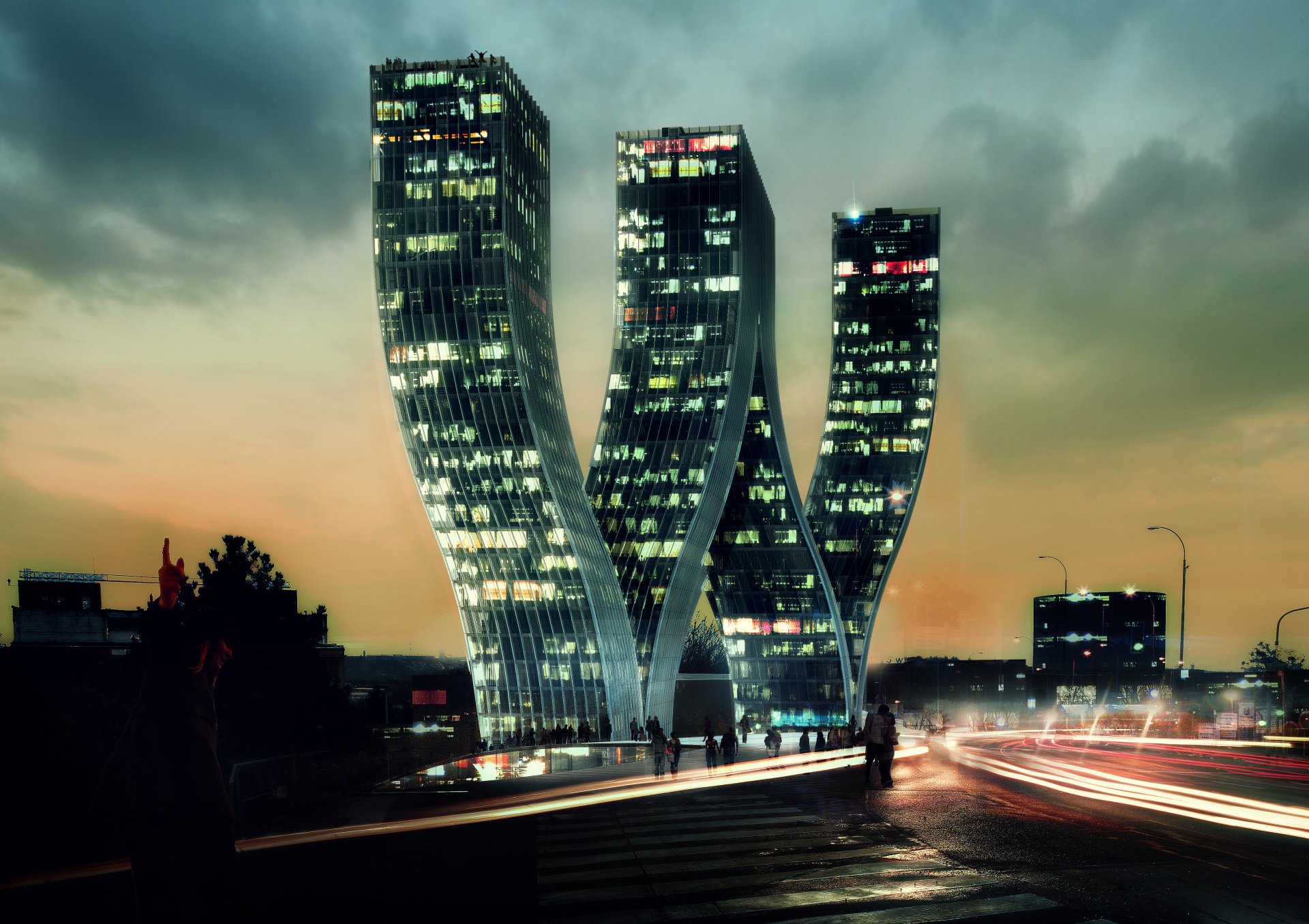A fabulous house with a black airship on an empty background