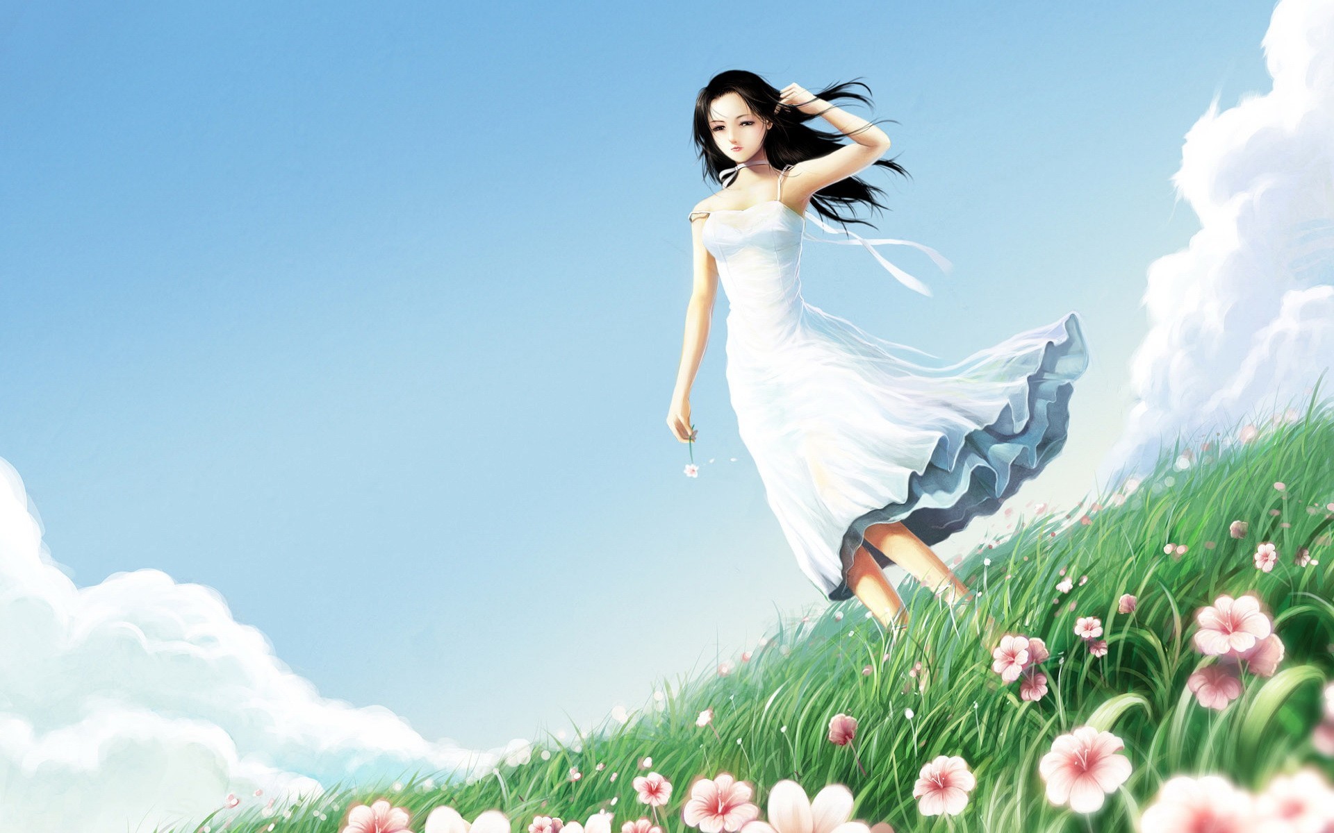 Drawing of a girl in a field with flowers