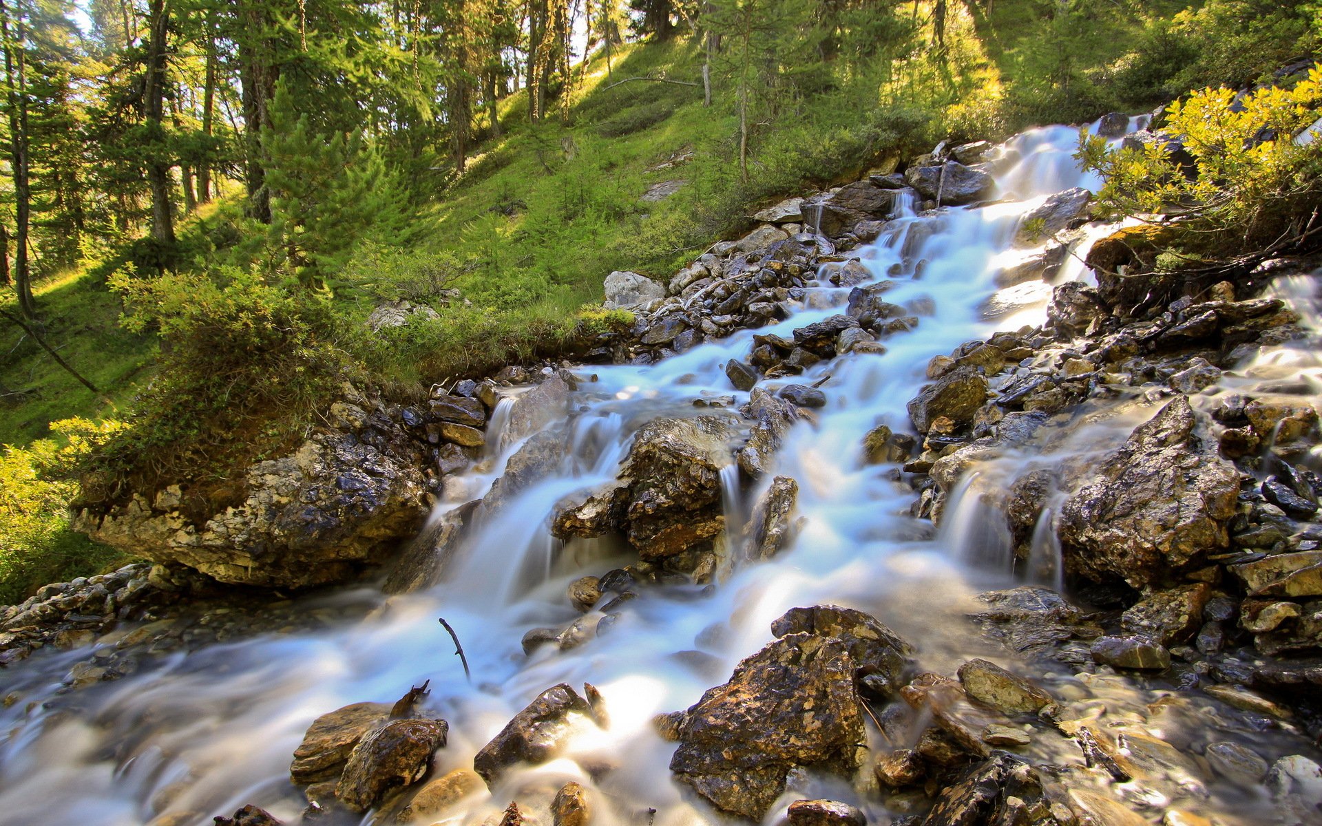 A river in an autumn forest covered with fallen leavesA river in an autumn forest covered with fallen leaves