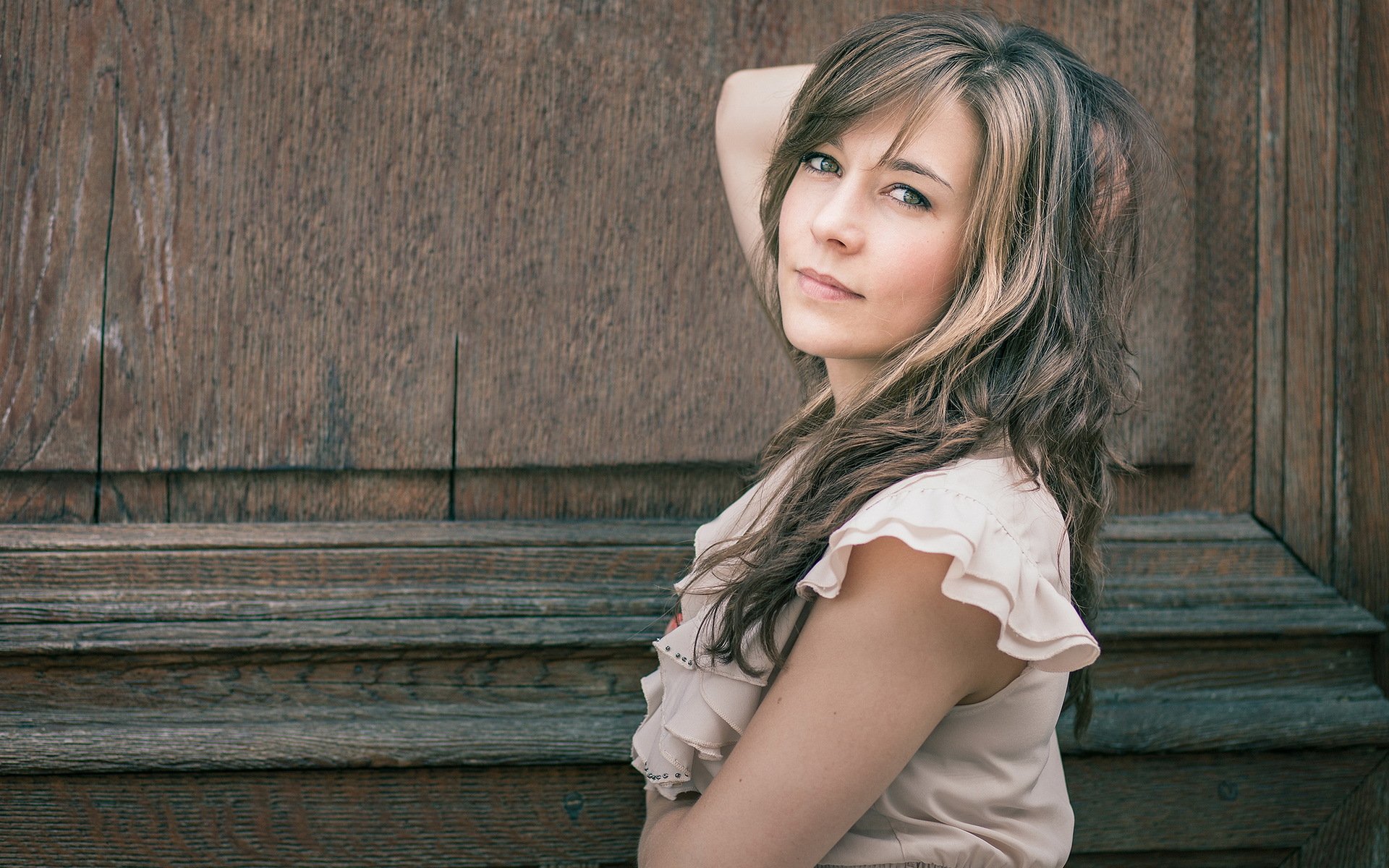 A beautiful girl in a white slip is sitting on the bedA beautiful girl in a white slip is sitting on the bed