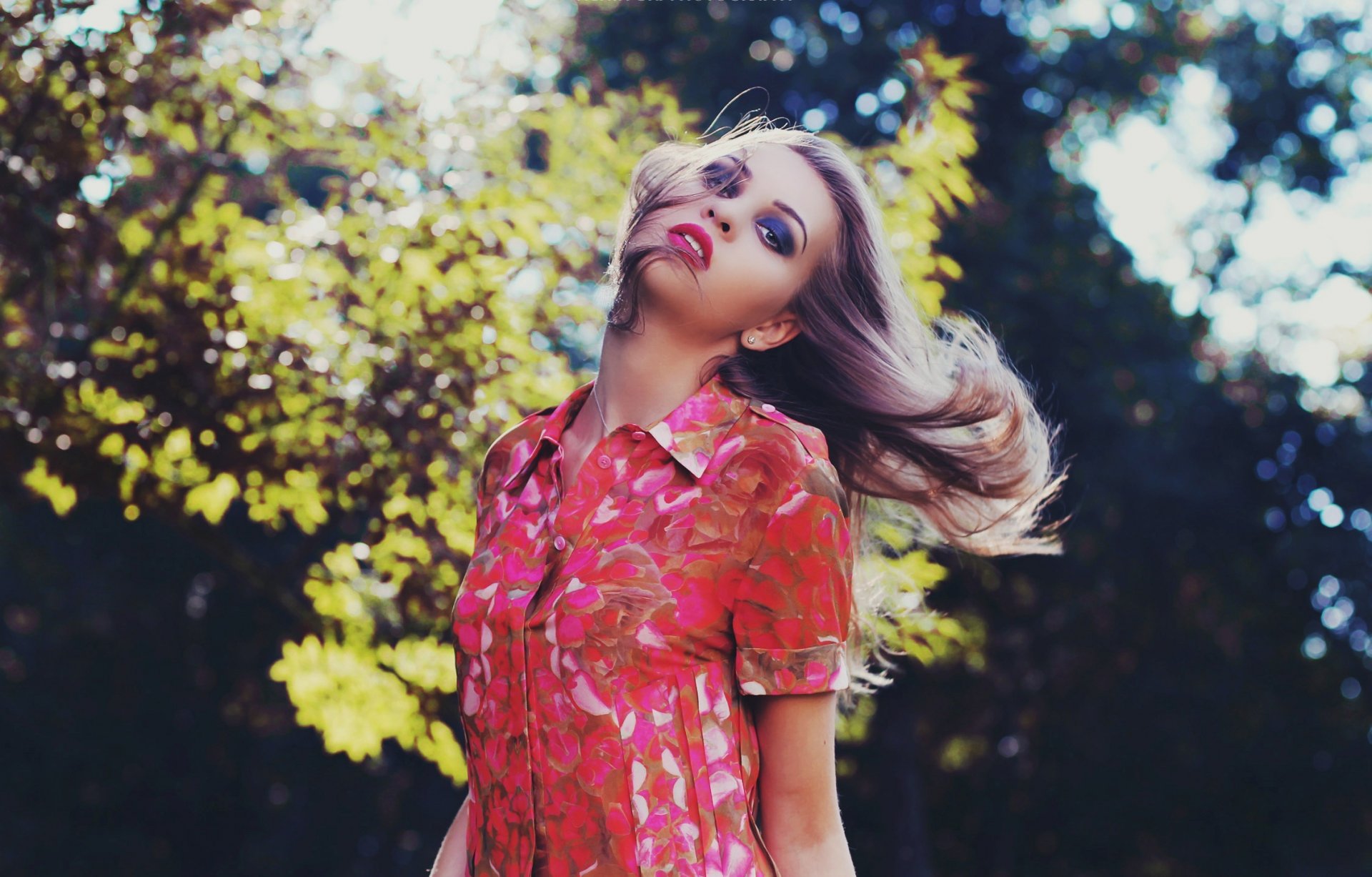 A girl in a dress against the background of natureA girl in a dress against the background of nature